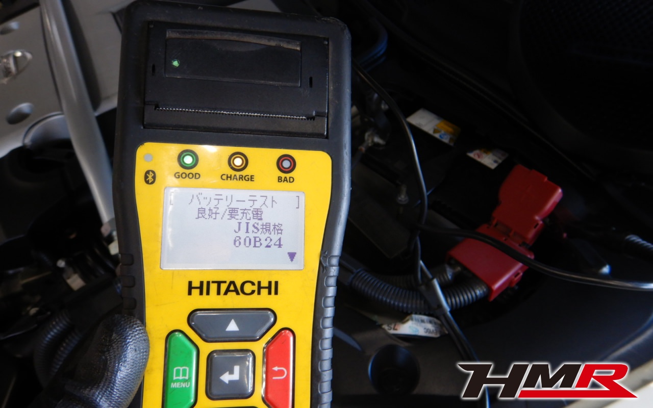 まず最初にバッテリーテスターでバッテリーを点検していきます。特に問題ありませんでした。充電されていなかったので充電を行いました。