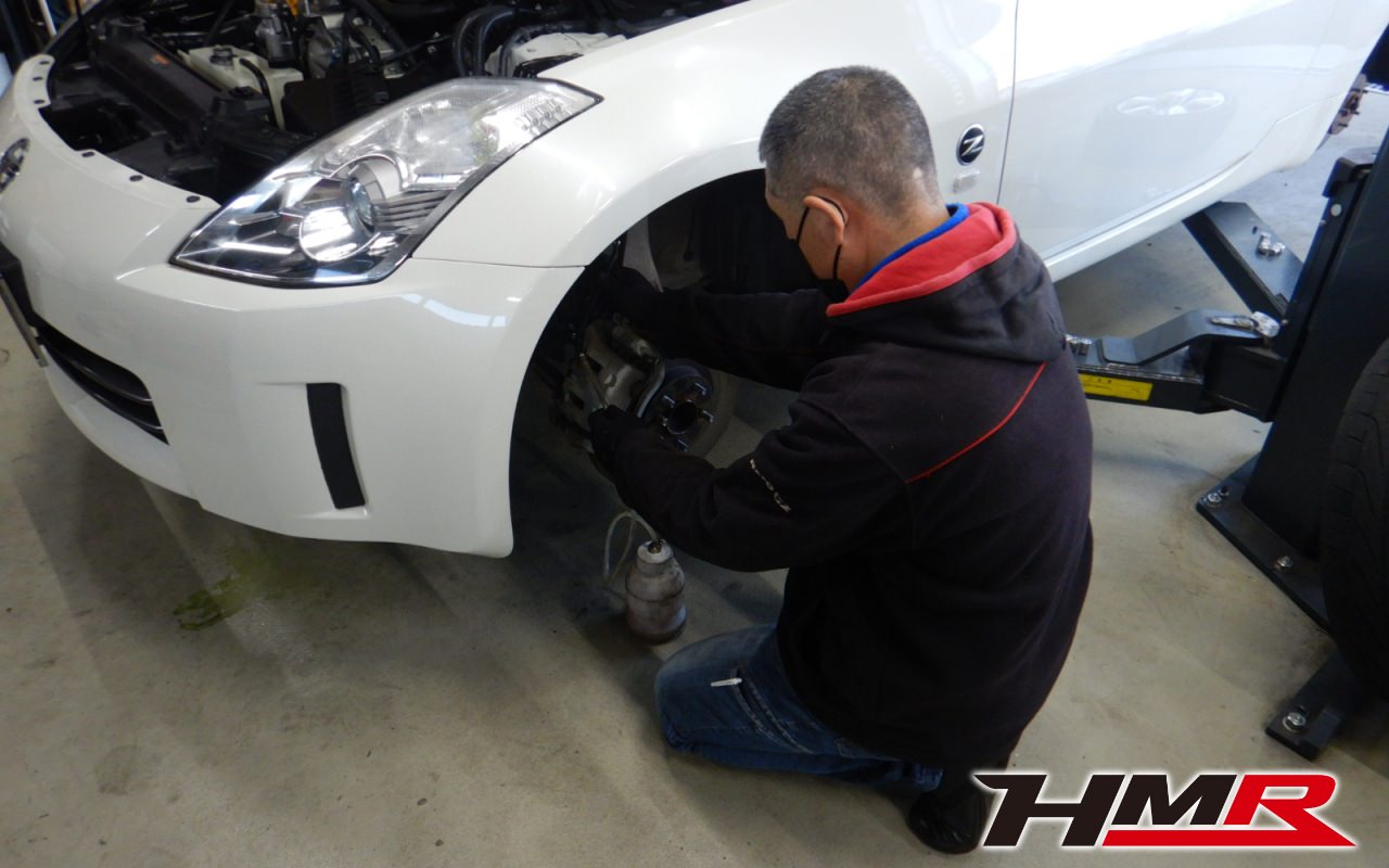 HMR(エイチエムアール)の栗原です。今回は純正ナビ HID装備のフェアレディZ(Z33)納車前点検整備を行いました。担当メカニックはワタナベです。