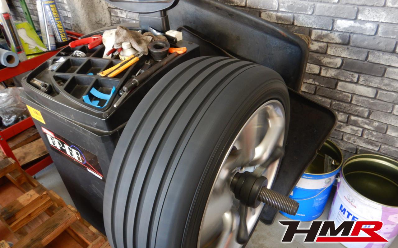 車体に取り付ける前にホイールバランサーでバランス調整をします。