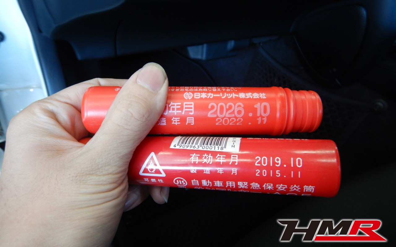 ミッションオイルも抜いていきます。ミッションオイルが劣化していくとギアの入りが悪くなったり、最悪ミッションのギアを痛めてしまいミッションブローに繋がります。  リアデフオイルも抜いていきます。 クーラント液を抜いていきます。 新しいMOTUL製リアデフオイルを入れていきます。 新しいミッションオイルを入れていきます。ミッションオイルはホンダ純正のMTF-3を使用しています。 新しいクーラント液を入れていきます。 次にブレーキフルードを交換しました。フルードはDOT4を使用しています。交換タイミングは車検毎をおススメしております。 エンジンオイルを入れていきます。エンジンオイルはWAKO’SプロステージS 100%化学合成油 10W-40を使用しています。  タイヤ溝の残量をチェックしていきます。フロント・リアともに5mmでした。 タイヤの空気圧チェックをしています。タイヤのエアはゆっくり少しずつ抜けていきます。ガソリンスタンドで簡単に入れられますので1ヶ月に1度のチェックをおススメいたします。 スペアタイヤも同様にチェックしていきます。 サンフレアの有効期限が切れていたので交換します。サンフレアは有効期限が切れていても車載されていれば車検は問題ありません。但しいざとなった時に使えるとは限りませんのでHMRでは有効期限が切れたものは交換させていただいております。
