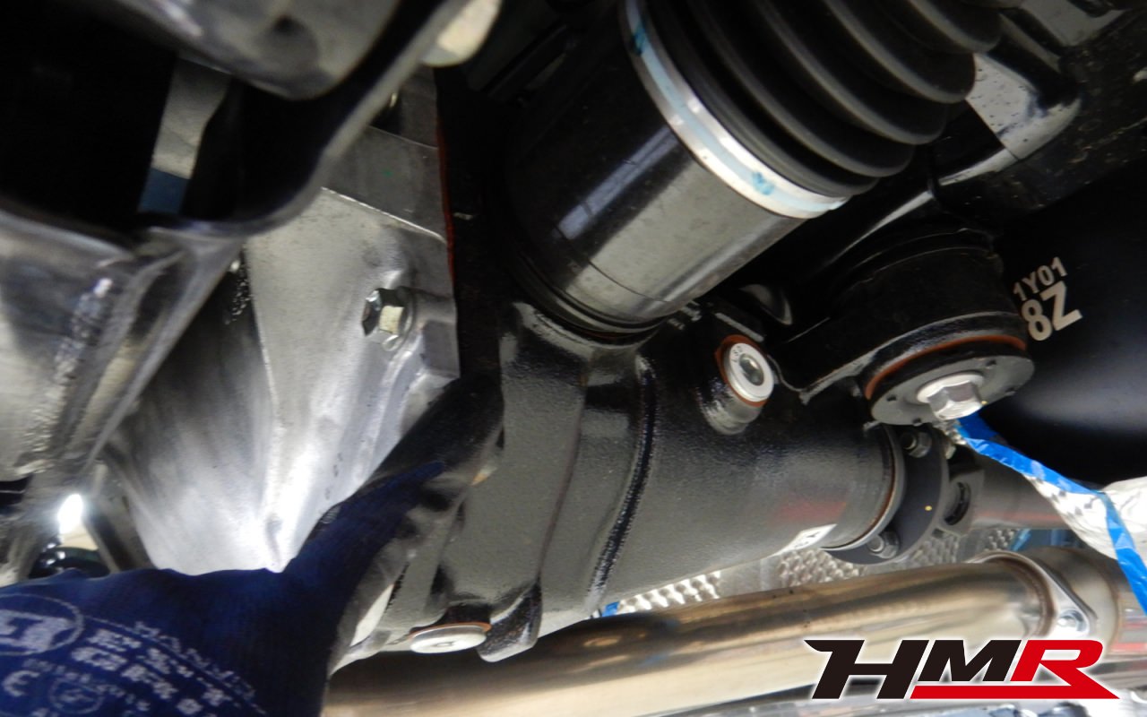 リアデフのブッシュの内部にはオイルが封入されており、振動を吸収しています。しかし、このブッシュが劣化するとヒビ割れからオイル漏れを引き起こしてしまいます。今回は特に問題ありませんでした。