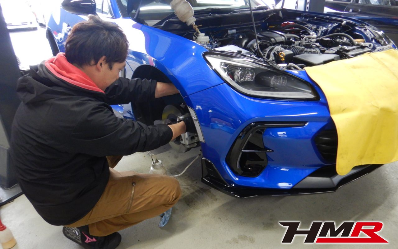 HMR(エイチエムアール)の栗原です。今回はTE37SL、STIエアロ ナビパック装備のBRZ(ZD8)の納車前点検整備を行いました。担当メカニックはムラマツです。