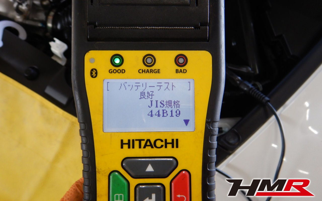 まずエンジンルーム内を点検していきます。バッテリーテスターでバッテリーを点検していきます。特に問題ありませんでした。充電されていなかったので充電をしました。バッテリーの交換時期は使用状況によりますが3〜5年のサイクルで交換することをおススメいたします。また寒い時期になるとバッテリー上がりが多くなります。少しでもマメにエンジンを掛けて充電したり、カー用品店などで購入できる充電器を用意しておくといいでしょう。 続いてエアフィルターの点検をしていきます。やや汚れは見受けられますが、特に問題ありませんでした。汚れで目詰まりを起こすと燃費悪化やエンジン本来の性能を発揮できなくなります。こちらも定期的にケースを開けて目視で確認してみましょう。  インテークホースをチェックしました。ヒビ割れなどはなく問題ありませんでした。インテークホースに亀裂や破損が起きるとエアフィルターを通さない空気がエンジンに送り込まれてしまいエンジン不調の原因となります。定期的な点検をおススメいたします。 エアコンホースのチェックを行いましたが、特に問題ありませんでした。 補機ベルトの状態およびオートテンショナーの異音やガタが無いかを点検していきます。特に問題ありませんでした。ベルトが切れてしまうとバッテリー充電が出来なくなり最悪エンジンが停止する恐れがあります。定期的な点検をおススメいたします。 リフトアップして下廻りをチェックしていきます。特に目立つようなキズやサビもありませんでした。 ミッションケース周りも特にオイル滲みもなくキレイでした。 ブレーキマスターシリンダーのフルードタンクをチェックしましたが、問題ありませんでした。経年劣化が進んでいくとフタがヒビ割れたりすることがあります。 続いてリフトアップして足廻りをチェックしていきます。まず最初にタイヤを縦横に揺らしてハブベアリングとボールジョイントのガタがないかチェックを行います。特に問題ありませんでした。走行中に異音やハンドルのガタつきなどを感じた場合は当店へお早めにご相談下さい。 続いてプラグの点検を行いました。4本とも特に問題ありませんでした。先端の部分がひどく汚れてしまうとエンジンが掛かりづらくなったり、走行中に失火が起こり故障の原因となります。エンジンが掛かりづらくなるなどの症状が出た場合は当店にご相談ください。 足廻りのブッシュ・ブーツをチェックしていきます。ブッシュ・ブーツが劣化してそのままにしておくとそこからグリスが漏れ出したり、異物が侵入して足廻りの機能に支障をきたすだけではなく、車検を通過できなくなってしまいます。またそれ以外にもダンパーのオイル漏れがないかを点検していきます。 ブレーキ廻りの点検をしていきます。まずはブレーキキャリパーシールの状態やキャリパーピストンの動きを確認していきます。特に問題ありませんでした。 キャリパーシールが劣化しピストン内に水分が侵入することでサビが発生します。サビをそのまま放置しているとキャリパーの動きを阻害されブレーキの引きずり症状や固着を引き起こしてしまう可能性があります。 ブレーキパッドの残量をチェックしていきます。フロント6mm・リア7mmでした。