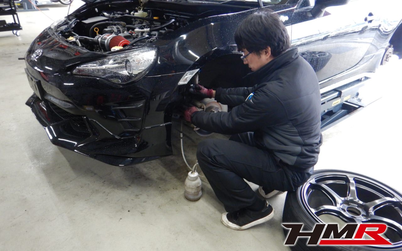 HMR(エイチエムアール)の栗原です。今回は後期フェイス&TRDエアロ&社外車高調装備の86(ZN6)の納車前点検整備を行いました。担当メカニックはホリグチです。
