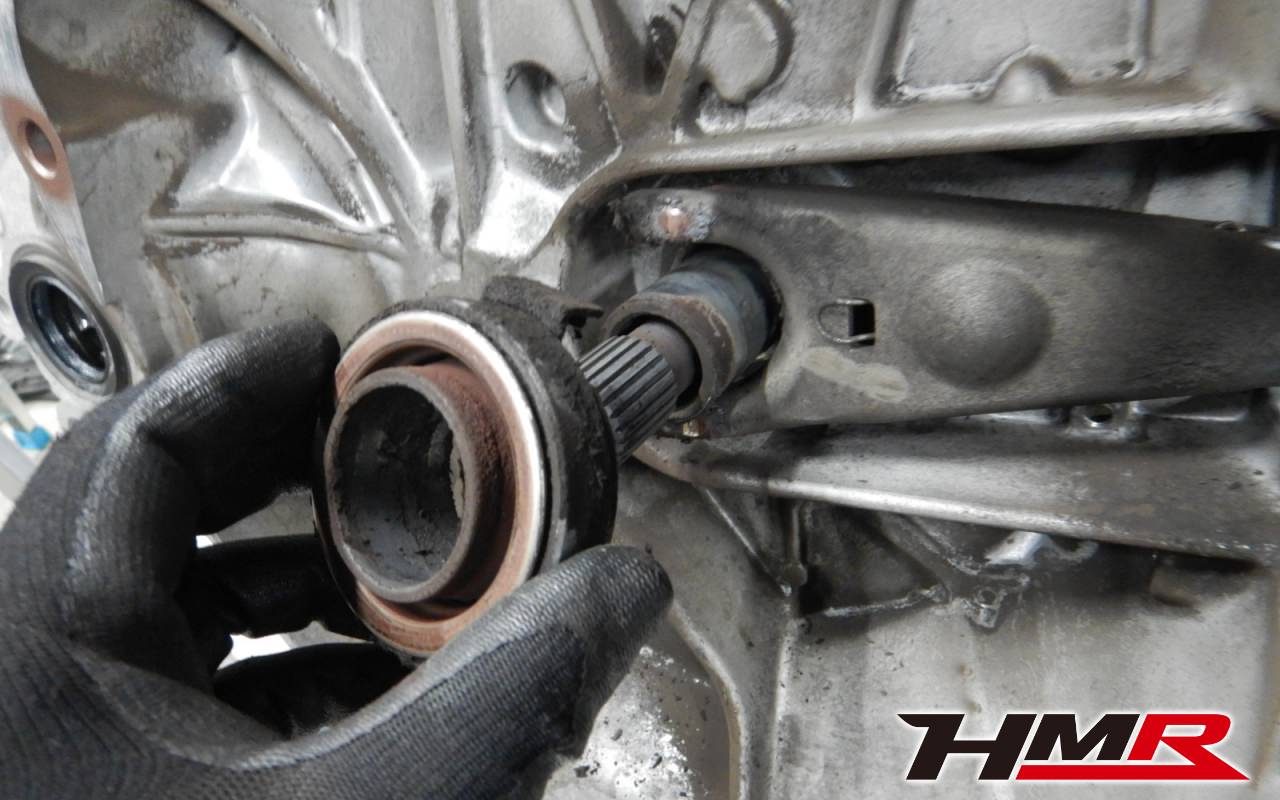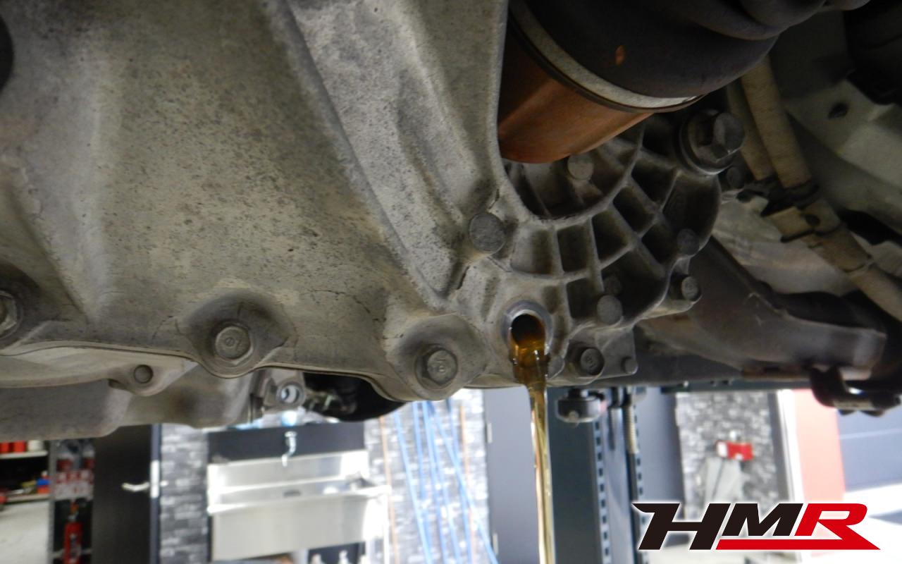 ミッションオイルを抜いていきます。この後にドライブシャフトも取り外していきます。