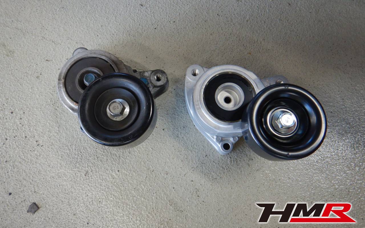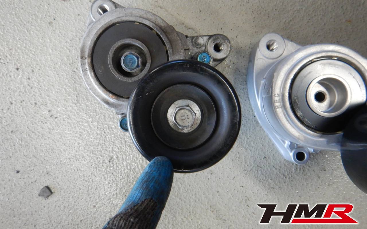 この補機ベルトテンショナーを交換していきます。右が交換品です。