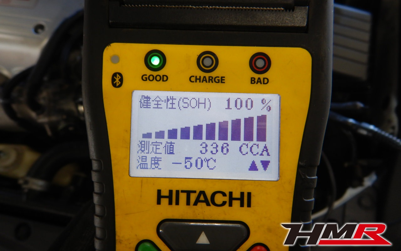 まず最初にバッテリーテスターでバッテリーを点検していきます。特に問題ありませんでした。