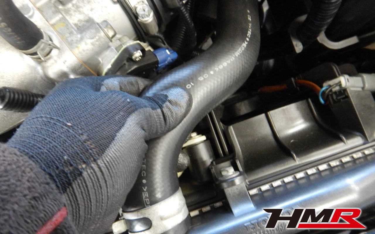 次に冷却系廻りを点検していきます。ホースに漏れはありませんでした。経年劣化していくと亀裂が入りそこから冷却水が漏れてしまいエンジンがオーバーヒートを起こす可能性があります。定期的な点検をおススメいたします。