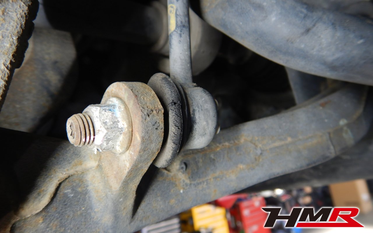 左フロントスタビリンクブーツが切れていました。左右ナックルロアーアームブーツにもヒビが入っていましたので後ほど交換させていただきました。