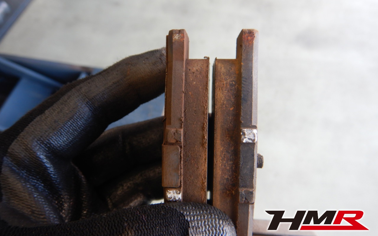 パッドの残量をチェックしていきます。おおよそフロント9mm・リア8mmありました。