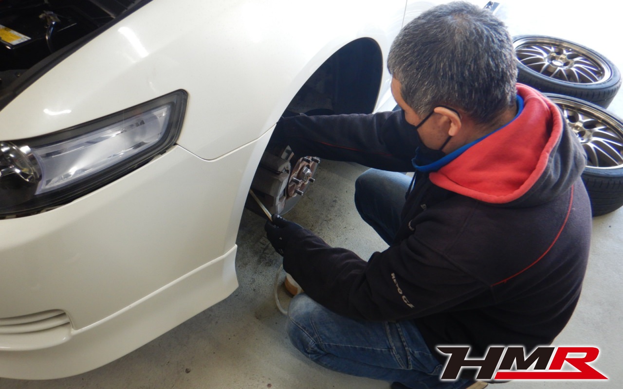 HMR(エイチエムアール)の栗原です。今回はレイズ18インチ 社外車高調&マフラーを装備したアコードユーロR(CL7)の納車前点検整備を行いました。担当メカニックはワタナベです。