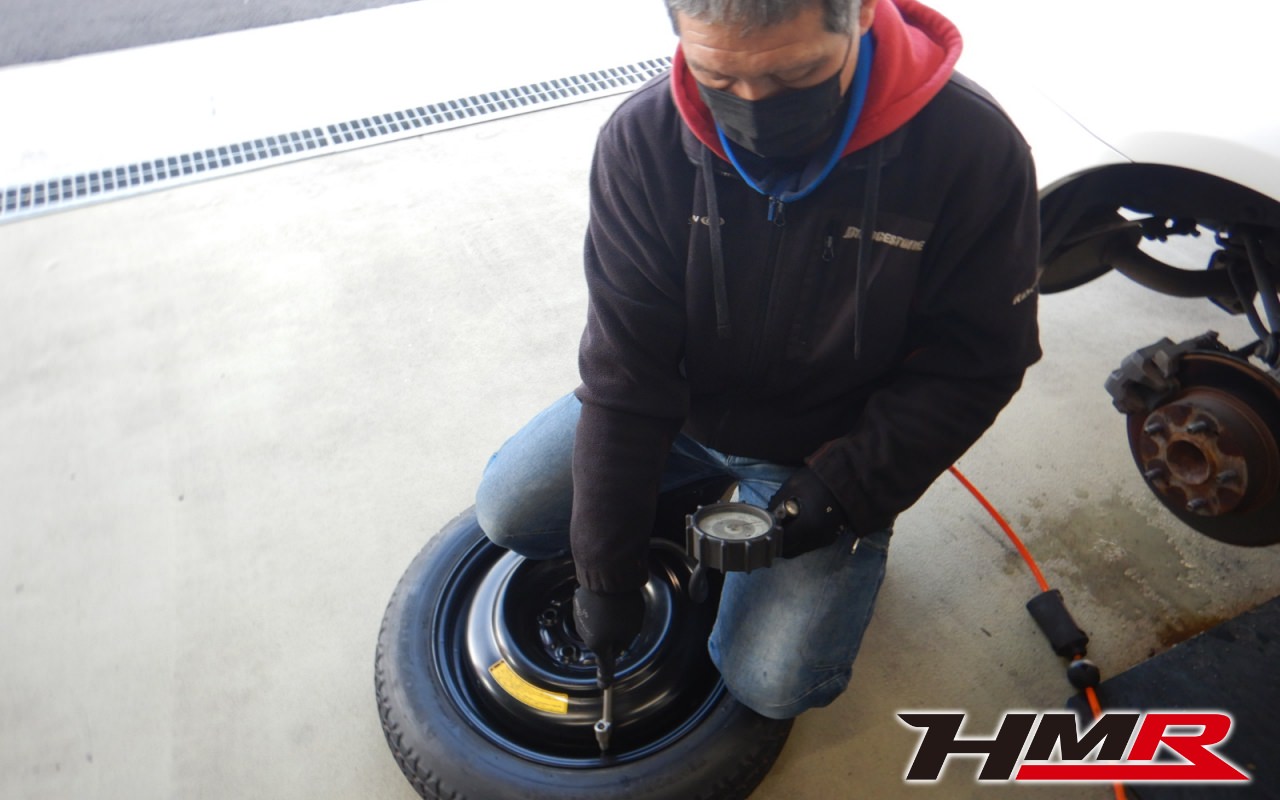 各タイヤの空気圧を調整していきます。空気圧は自然と少しずつ抜けていきますのでガソリンスタンドなどで定期的な点検を行うことをおススメします。