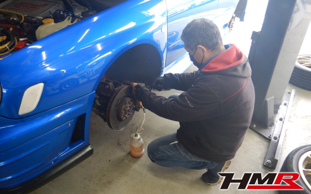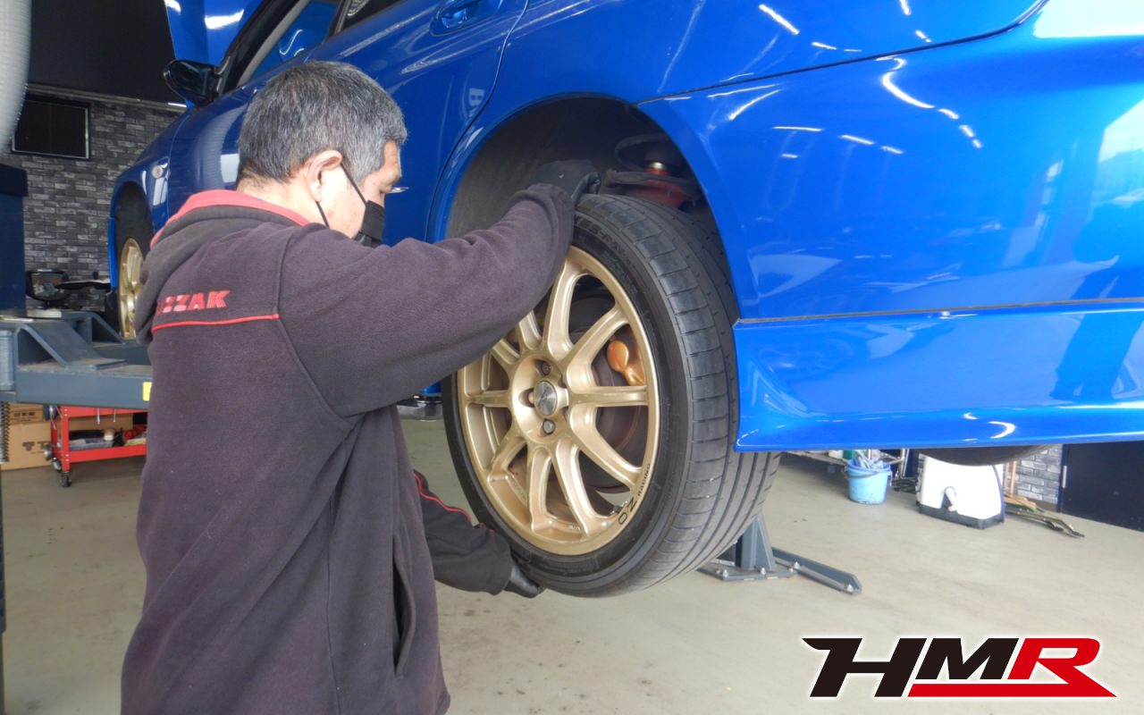 HMR(エイチエムアール)の栗原です。今回はプロドライブ18インチ ないる屋WRカーレプリカエアロ装備のインプレッサWRX STI(GDB)の納車前点検整備を行いました。担当メカニックはワタナベです。