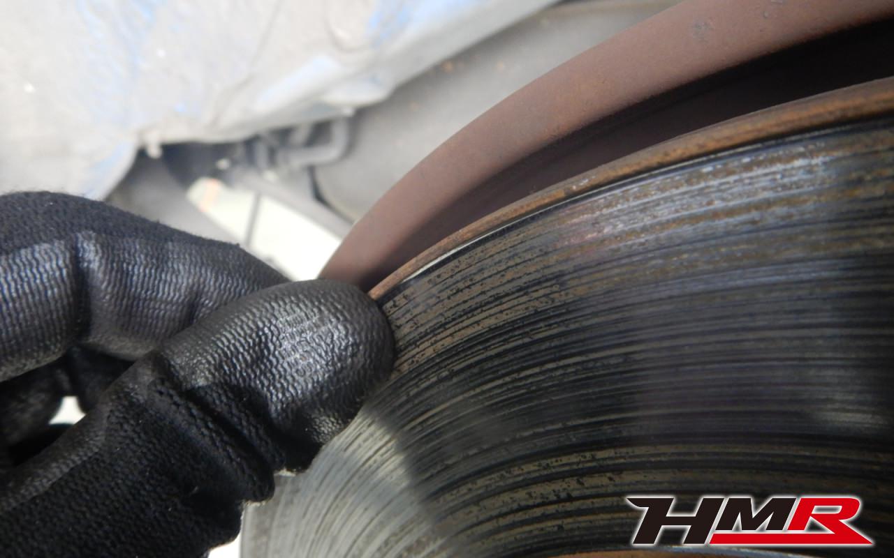 続いてリフトアップして足廻りをチェックしていきます。まず最初にタイヤを縦横に揺らしてハブベアリングとボールジョイントのガタがないかチェックを行います。特に問題ありませんでした。走行中に異音やハンドルのガタつきなどを感じた場合は当店へお早めにご相談下さい。