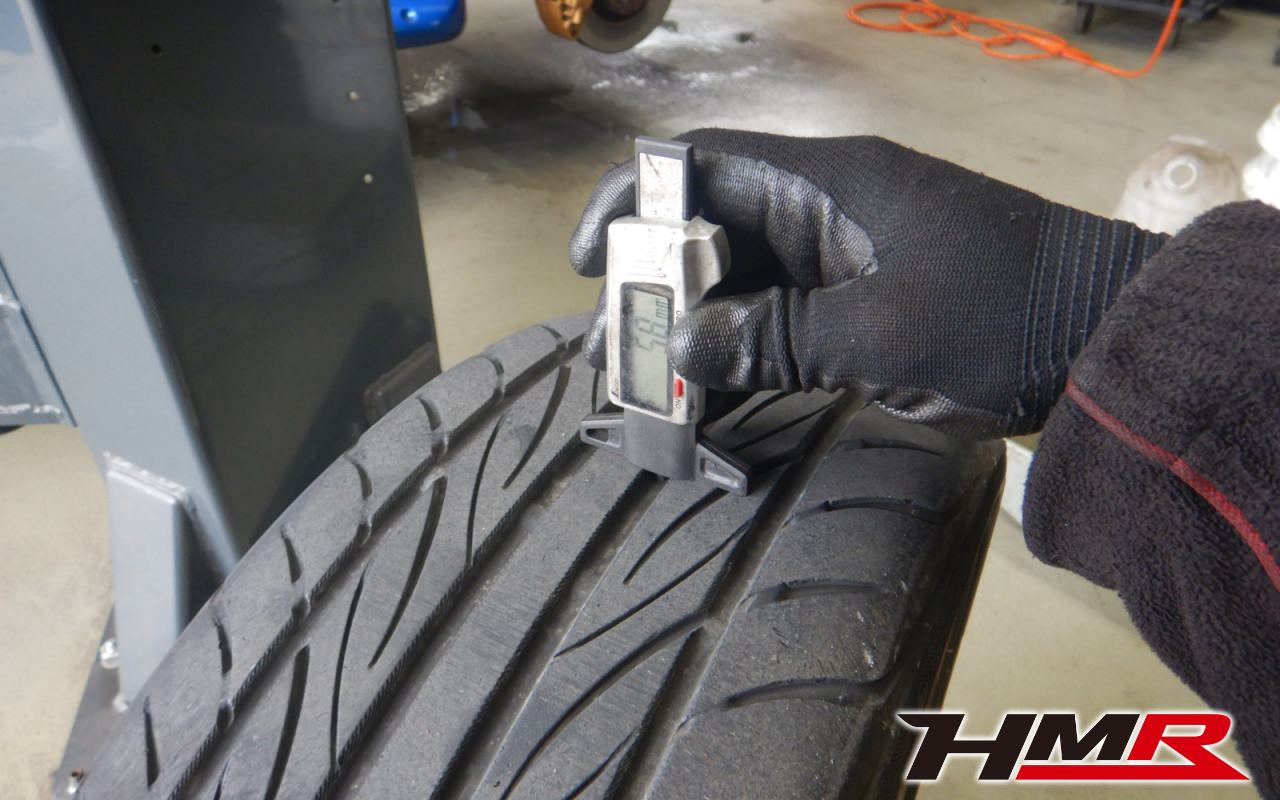 タイヤ溝をチェックしていきます。フロント5mm・リア6mmでした。