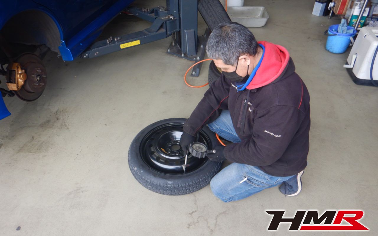 各タイヤの空気圧を調整していきます。空気圧は自然と少しずつ抜けていきますのでガソリンスタンドなどで定期的な点検を行うことをおススメします。