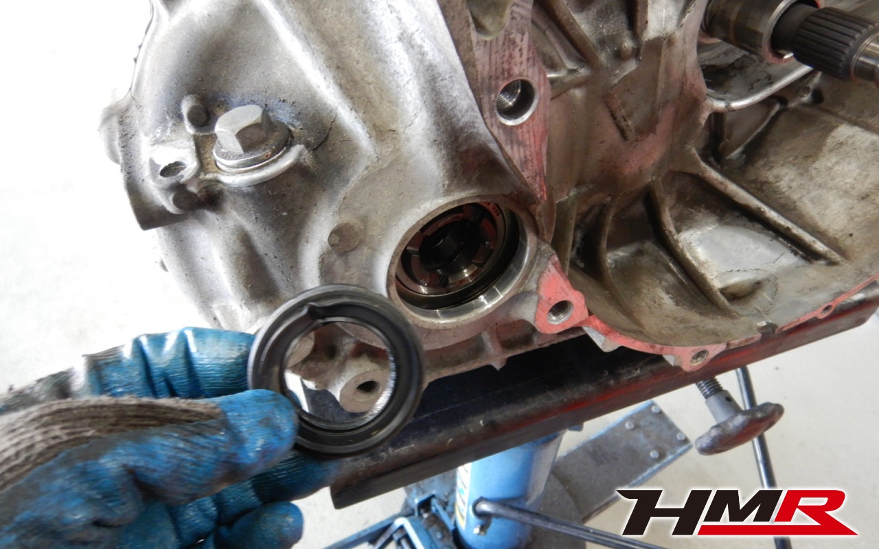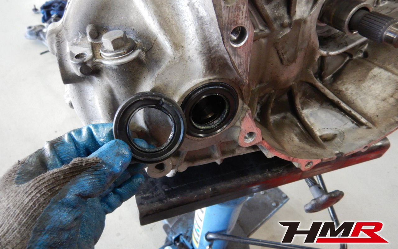 デフサイドオイルシールを交換していきます。 こちらも状態に関わらずクラッチ交換と同時に交換をオススメする箇所です。オイル漏れが起こりやすい箇所でもあります。