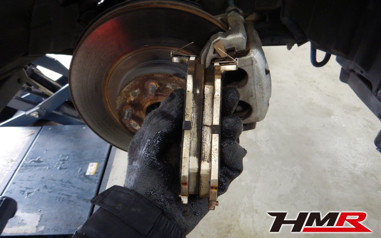 ブレーキパッドの残量をチェックしていきます。社外ブレーキパッドが入っていましたが残量はおおよそフロント8mm・リア9mmでした。