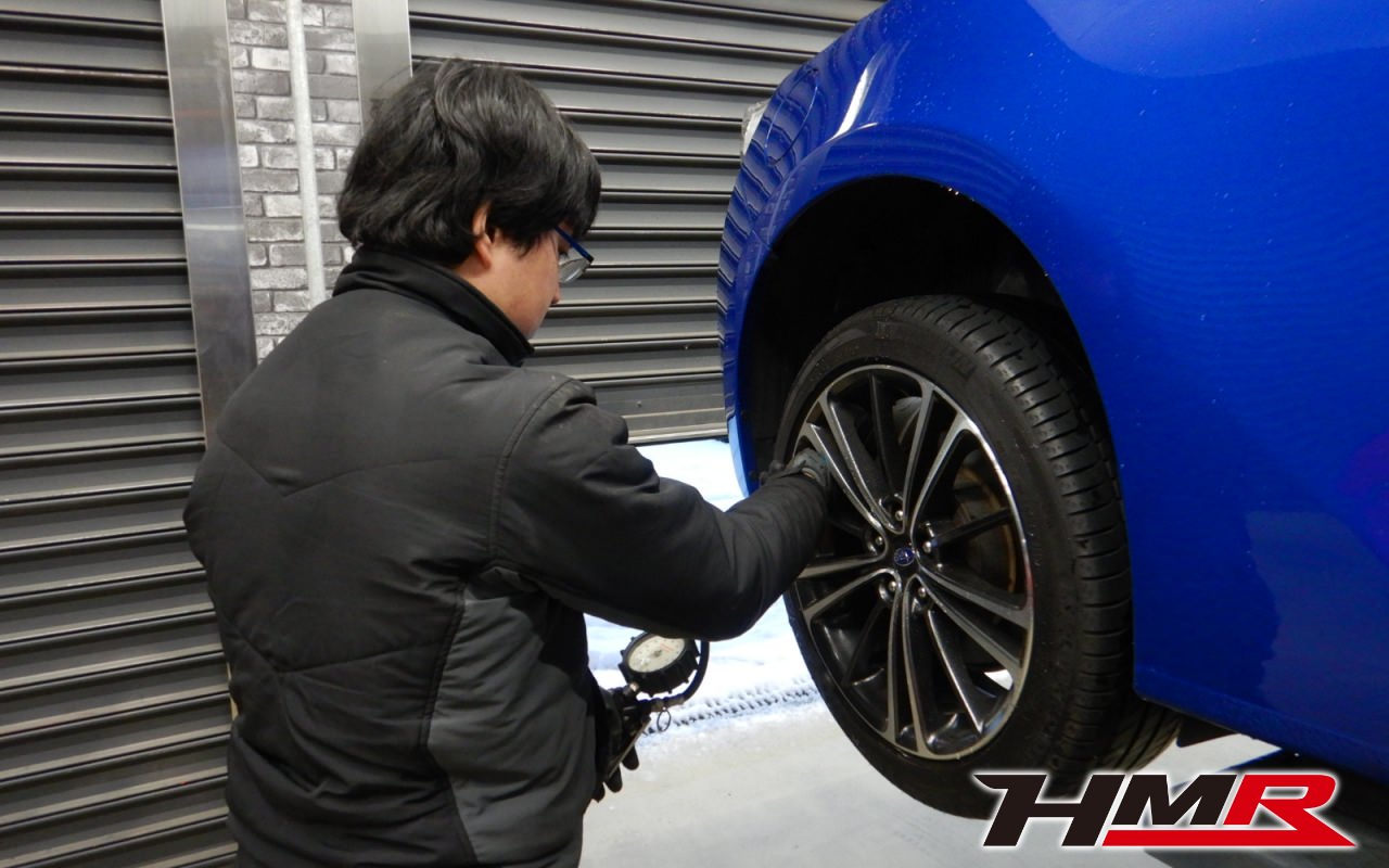 タイヤの空気圧チェックをしています。タイヤのエアはゆっくり少しずつ抜けていきます。ガソリンスタンドで簡単に入れられますので1ヶ月に1度のチェックをおススメいたします。タイヤ溝の残量チェックをしました。フロント・リアともに6mmでした。