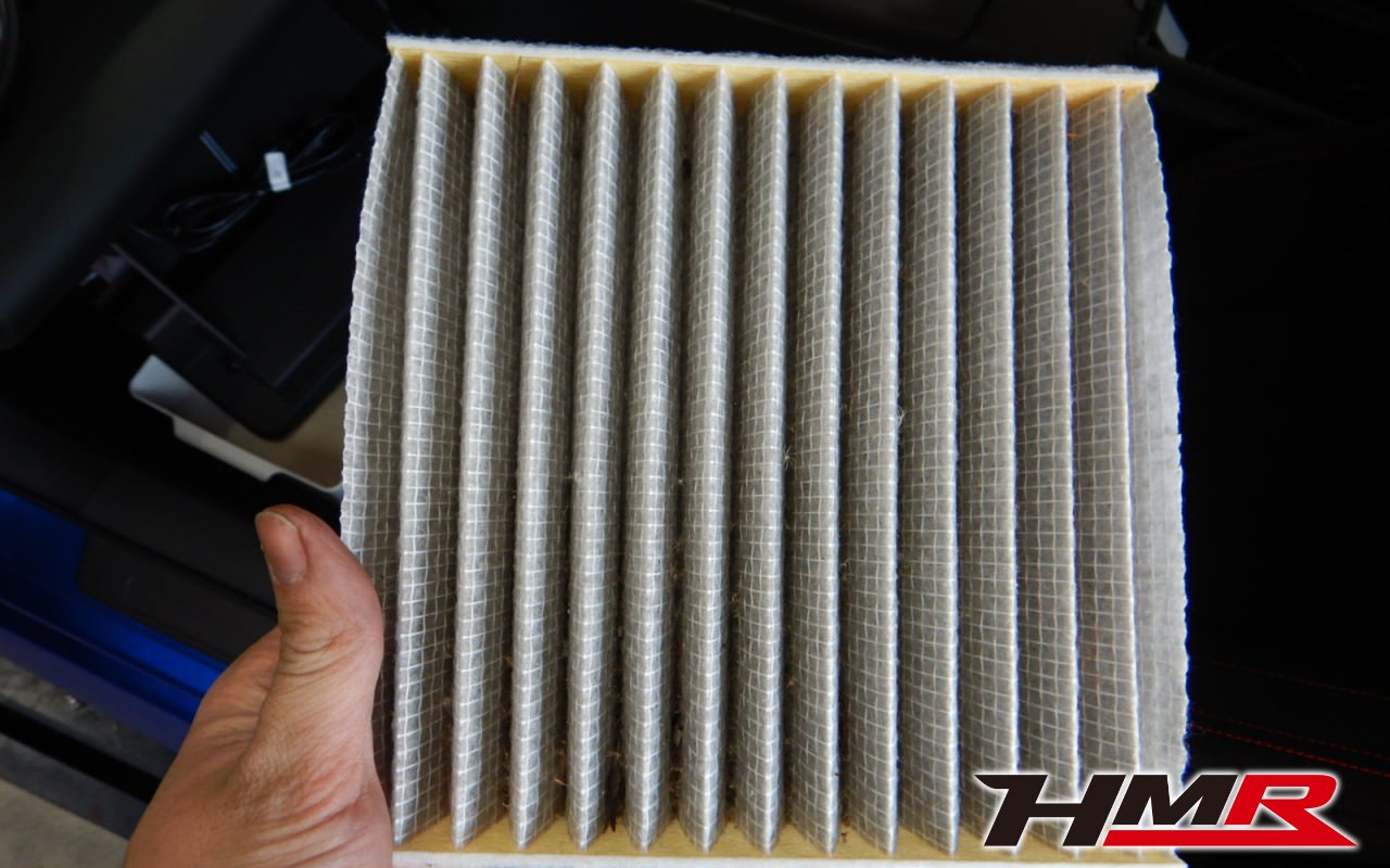 グローブボックス奥にあるエアコンフィルターも取り外したらゴミが付着していましたので交換させていただきました。 フィルターにホコリや細かなゴミなどが目詰まりしてしまうと車内の不快な匂いの原因につながったり、エアコンの効きが落ちてしまいます。