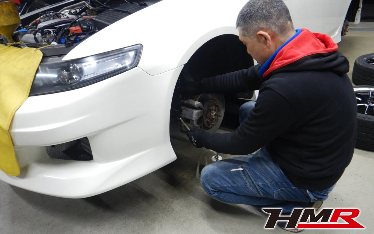 HMR(エイチエムアール)の栗原です。今回はS耐フロントバンパー テイン車高調装備のアコードユーロR(CL7)の納車前点検整備を行いました。担当メカニックはムラシタです。