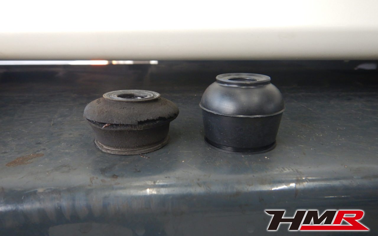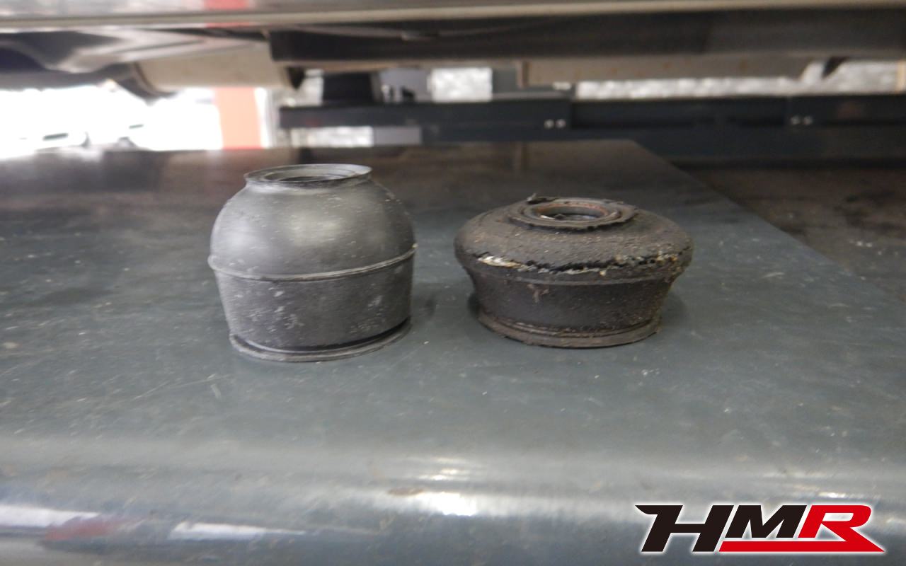 フロントアッパーアームブーツが切れていましたので後ほど交換させていただきました。フロントロアーアームにヒビが見つかりましたが、すぐの交換は必要ないのでまたタイミングを見て交換をオススメいたします。タイヤ溝の残量は、フロント3mm・リア2mmでした。タイヤ溝の残量も少なめとなっていますのでタイミングを見て交換をオススメいたします。