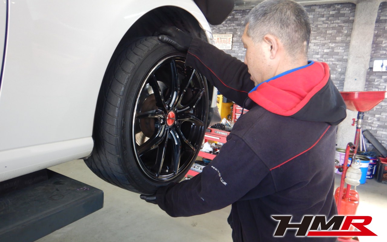 HMR(エイチエムアール)の栗原です。今回はレイズ18インチ ブリッツ車高調装備の86(ZN6) 2.0 GT リミテッドの納車前点検整備を行いました。担当メカニックはワタナベです。