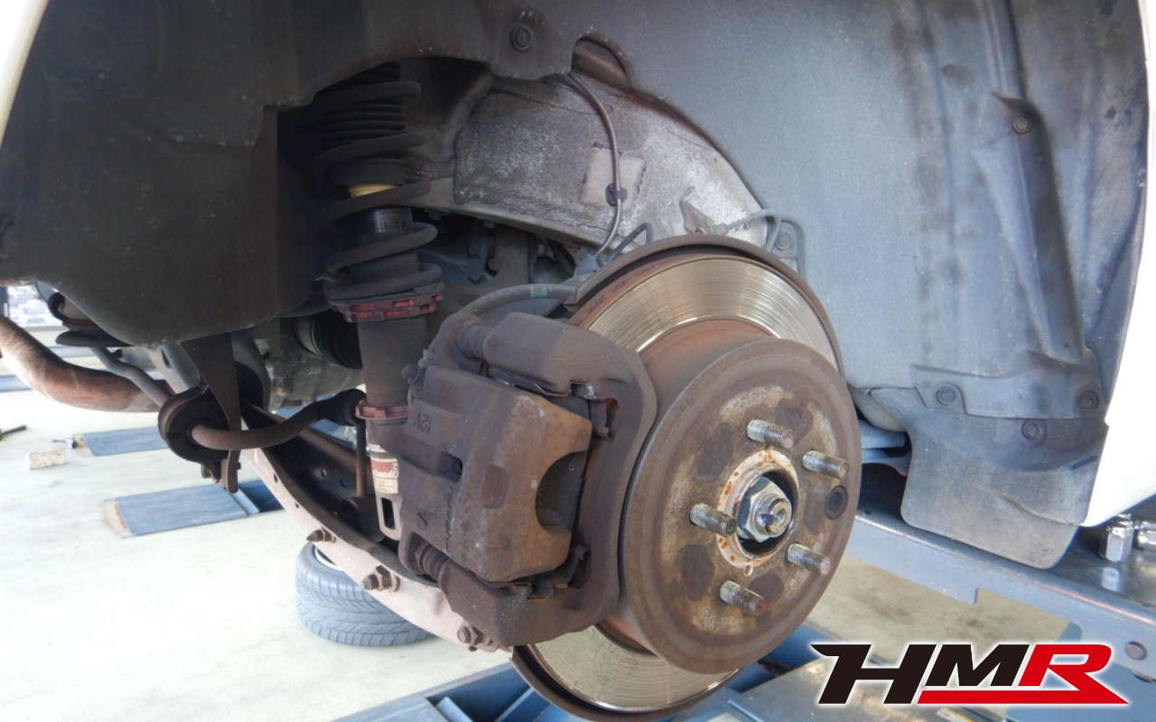 ハブベアリング・ボールジョイント、アーム・リンク類のガタ、ブッシュ・ブーツ類の劣化、エンジン・ミッション・デフからのオイル漏れと各マウント類、タイヤ溝の残量、空気圧の点検しました。
