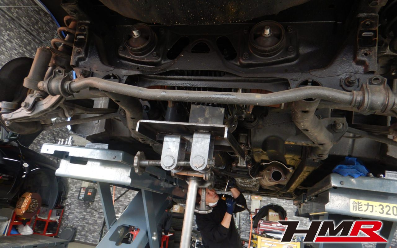 S2000のデフカバーは元々のオイル容量が少なく、サーキットなどの高負荷走行時は油温が上がりやすかったり、オイルの劣化が進みやすい傾向があります。その対策としてより多くのオイルが注入できる大容量デフカバーに交換します。まずデフを下ろしていきます。