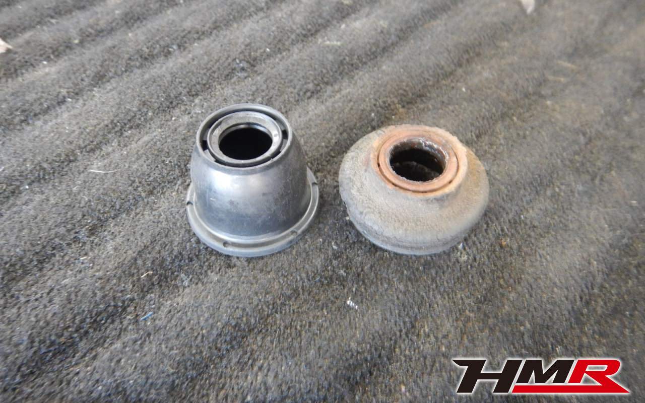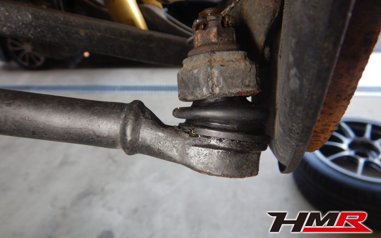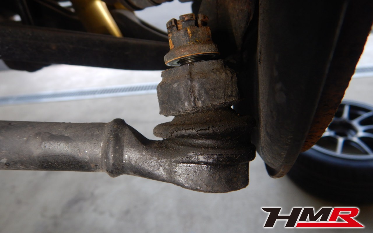 タイロッドエンドブーツの右側、フロントアッパーアームブーツ、左リアスタビリンクブーツ、トーロッドアーム左右ブーツ、フロントロアーアームブッシュ左右にヒビが見つかりました。すぐの交換は必要ないのでまたタイミングを見て交換をオススメいたします。