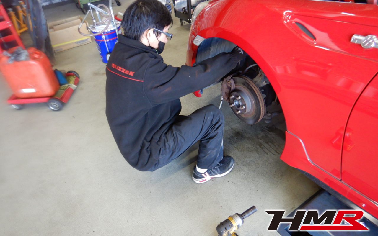 HMR(エイチエムアール)の栗原です。今回はTRDエアロ マフラー 社外車高調装備の86(ZN6) 2.0GTの納車前点検整備を行いました。担当メカニックはムラシタです。