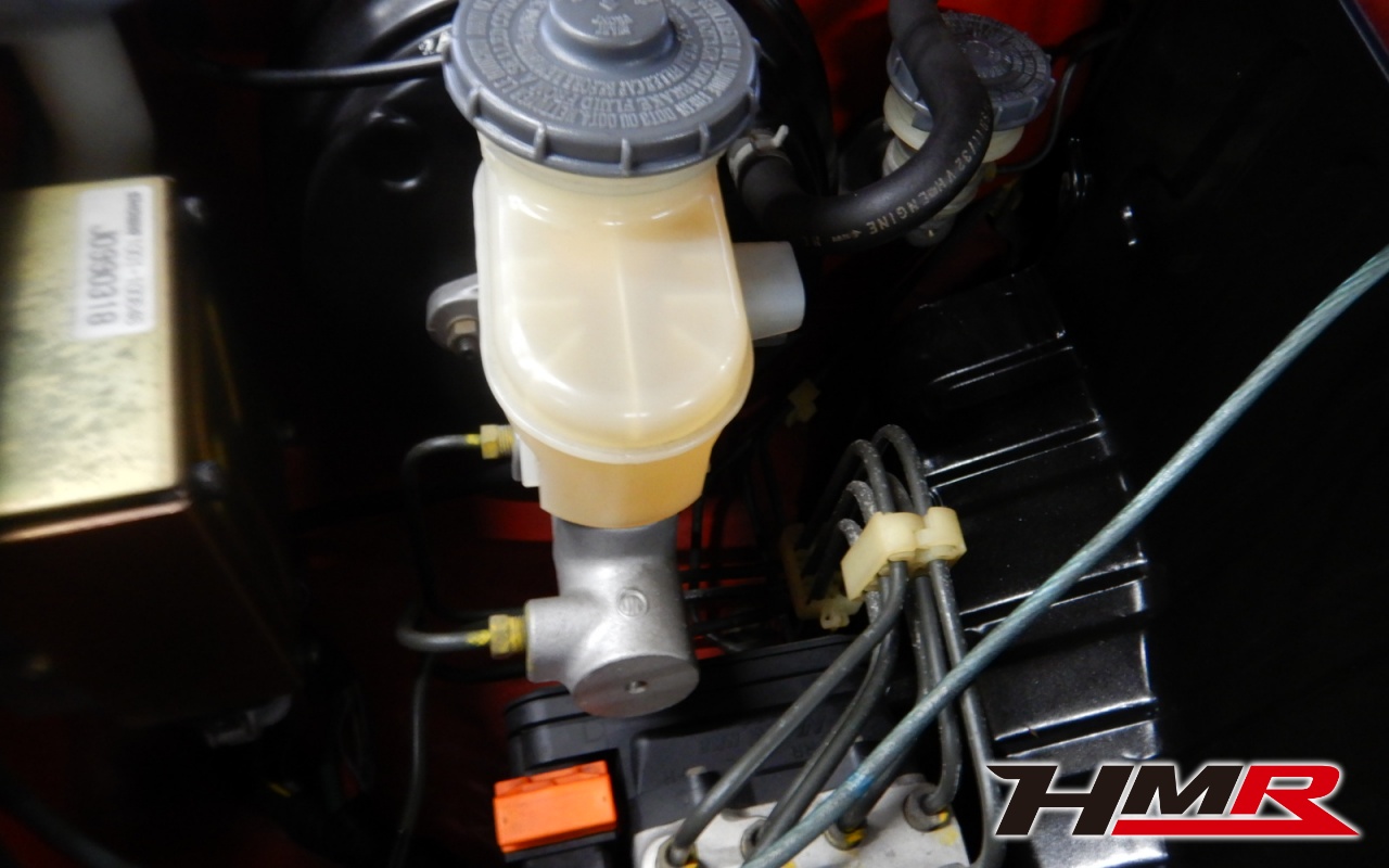 バッテリー、インテークホース、エアクリーナー、補機ベルト、プラグ、ブレーキ・クラッチマスターシリンダー、各部ゴム類の劣化、パッキン類・シール類からのオイル滲み・漏れ、ラジエターの劣化、冷却水漏れ、その他異音などをチェックしました。クラッチマスターから液漏れがありましたので後ほど交換させていただきました。