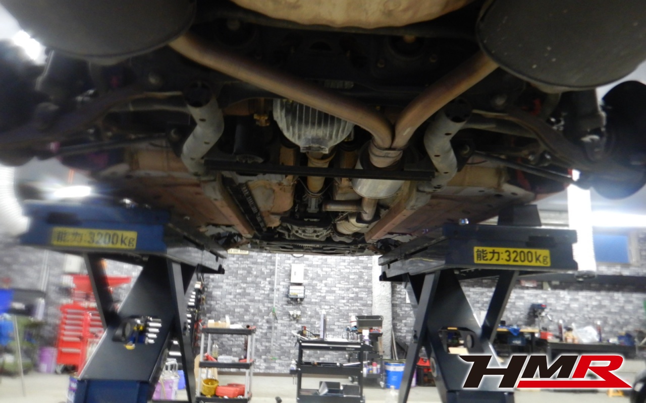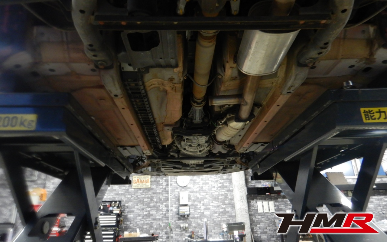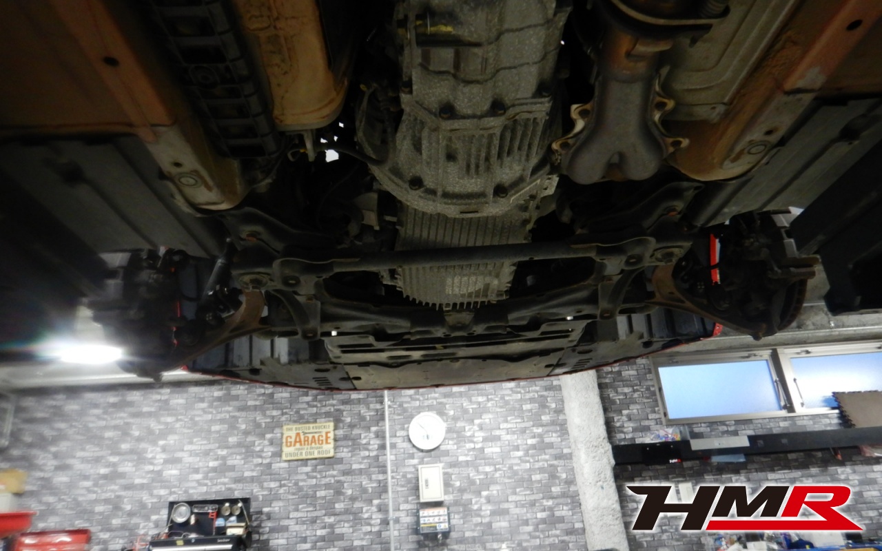 ハブベアリング・ボールジョイント、アーム・リンク類のガタ、ブッシュ・ブーツ類の劣化、エンジン・ミッション・デフからのオイル漏れと各マウント類、タイヤ溝の残量、空気圧の点検しました。