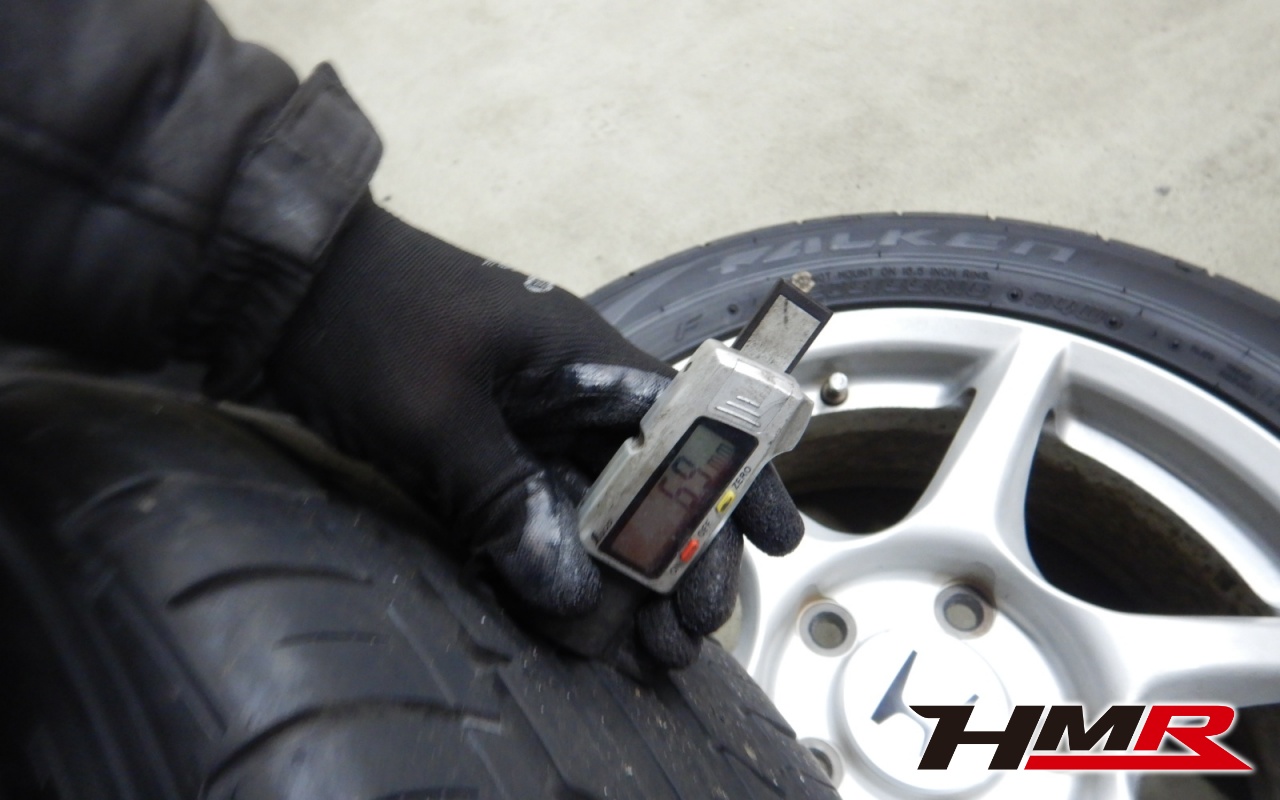 劣化してヒビが入っているブーツがありました。フロント左右ロアアーム、右ドライブシャフトアウターブーツ、リアトーコントロールロッドブーツを後ほど交換させていただきました。タイヤの残量はフロント6mm・リア6mmでした。