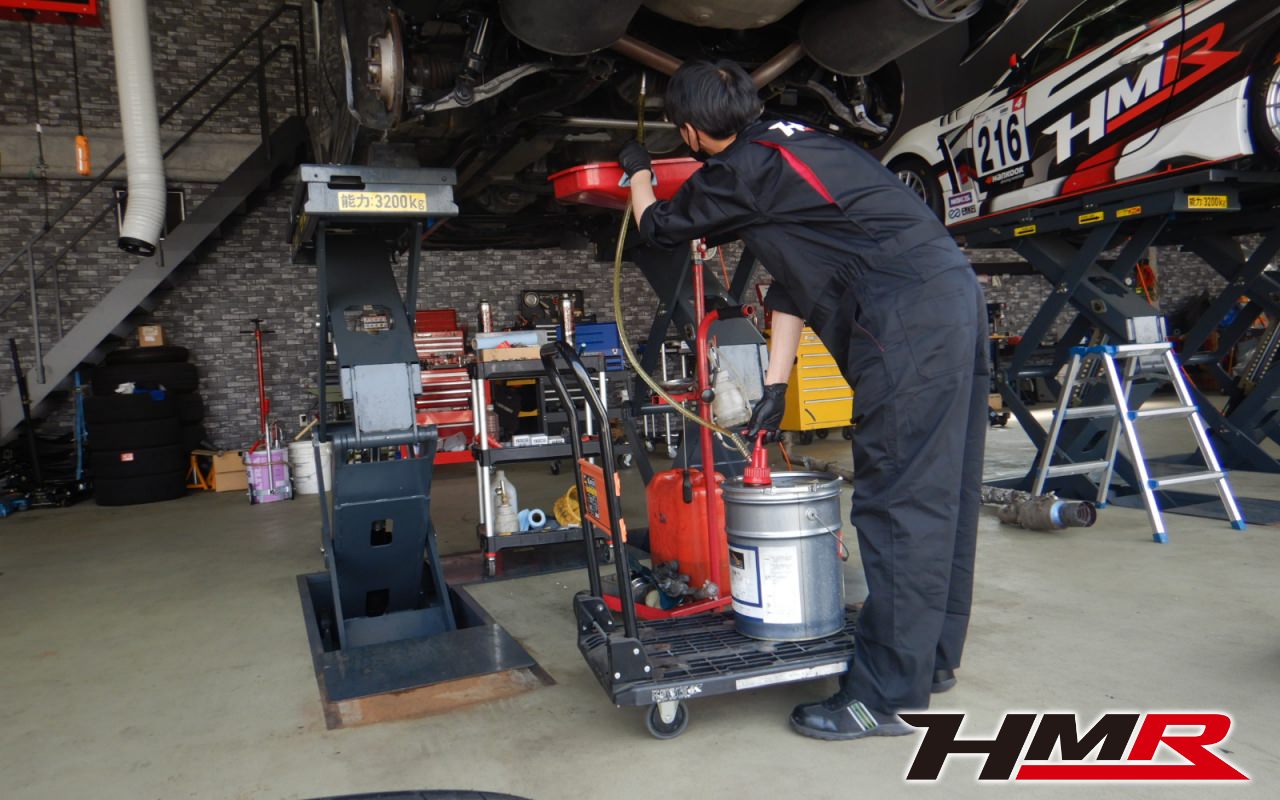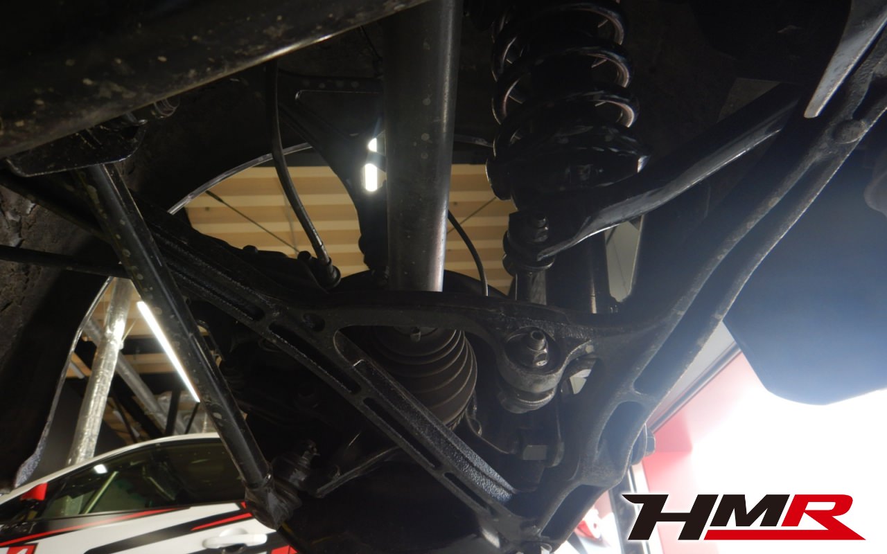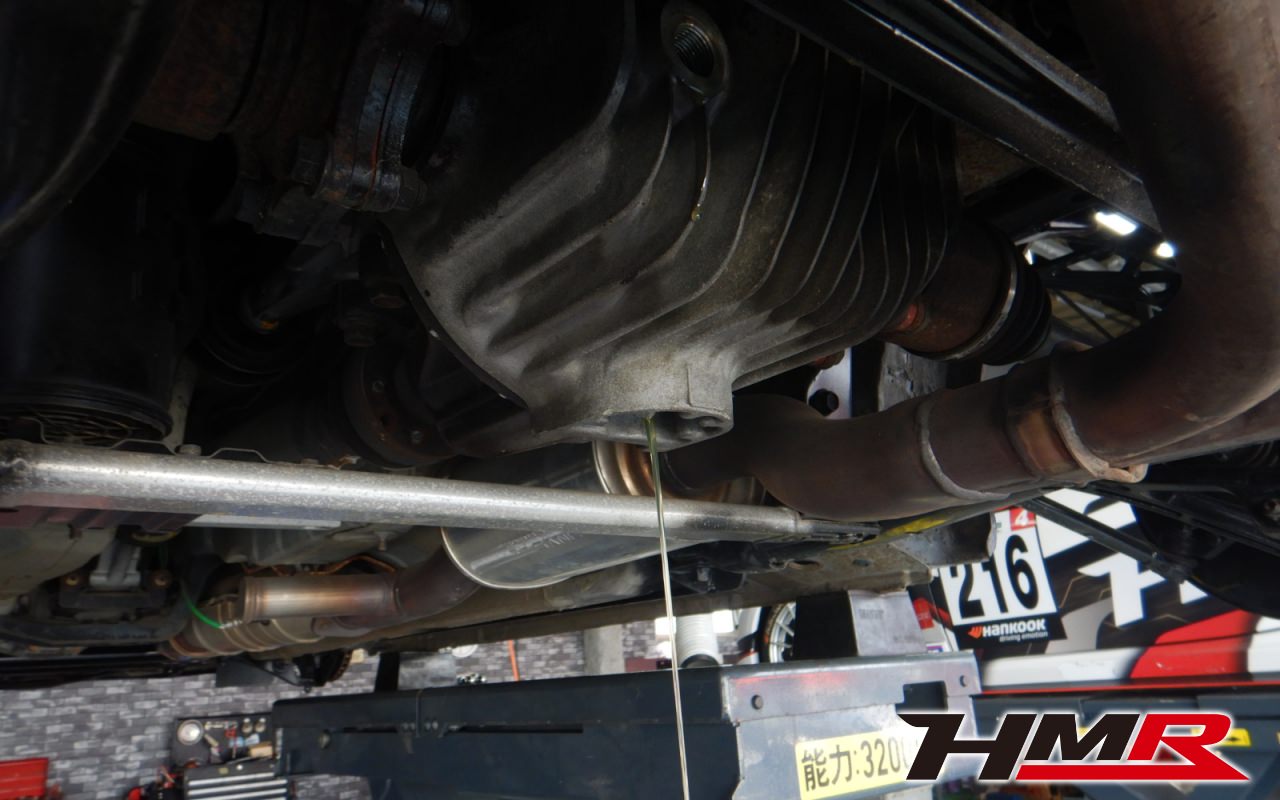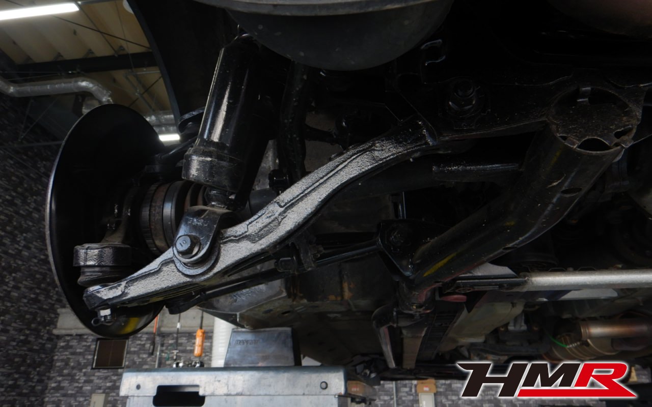 ハブベアリング・ボールジョイント、アーム・リンク類のガタ、ブッシュ・ブーツ類の劣化、エンジン・ミッション・デフからのオイル漏れと各マウント類、タイヤ溝の残量、空気圧の点検しました。