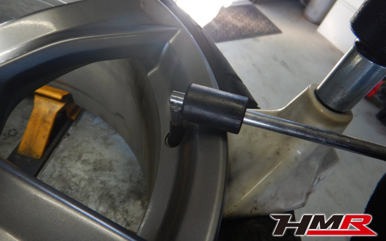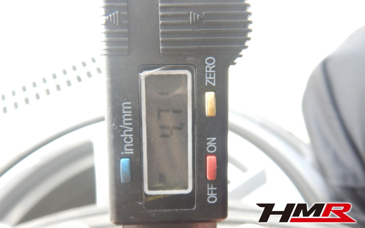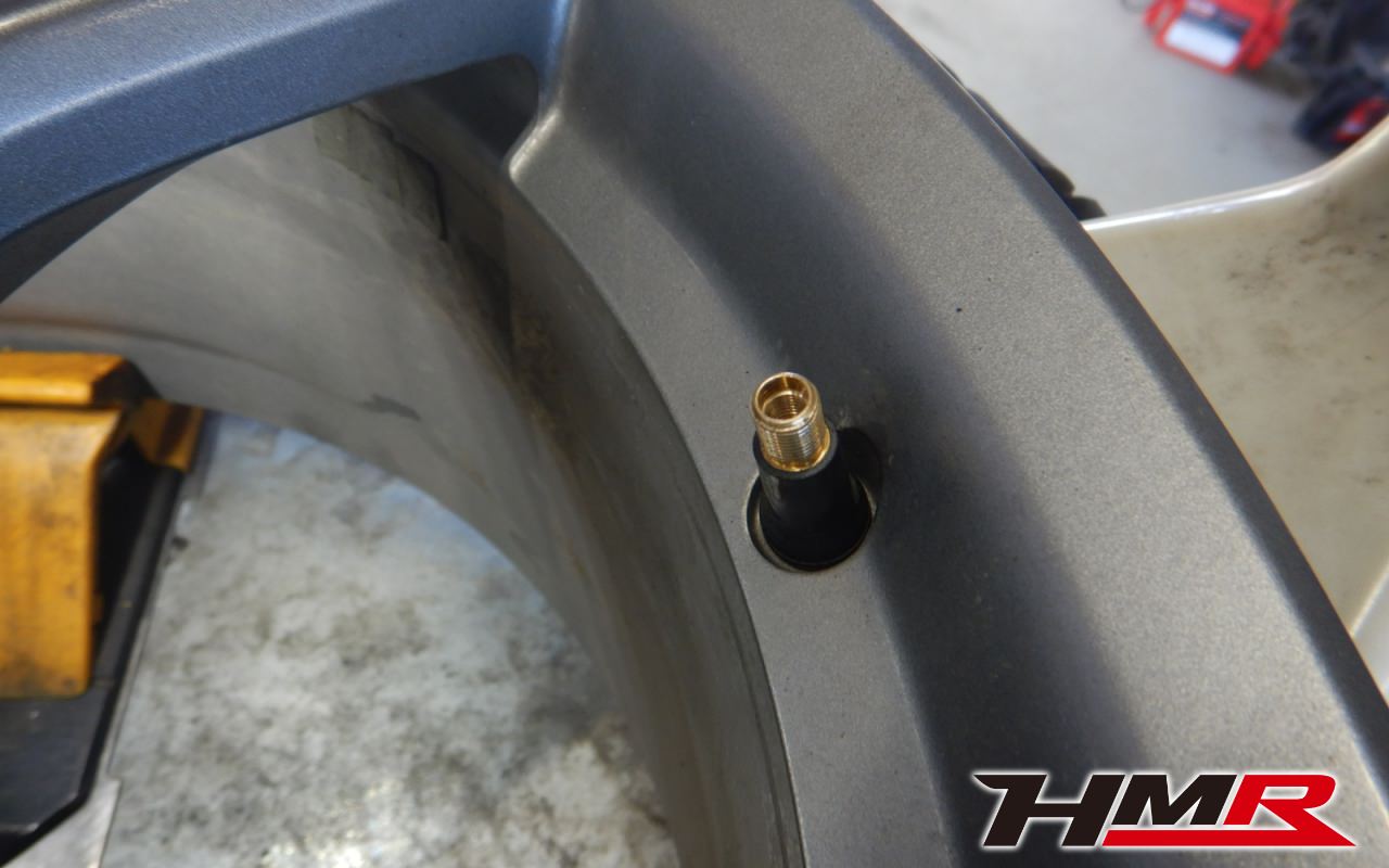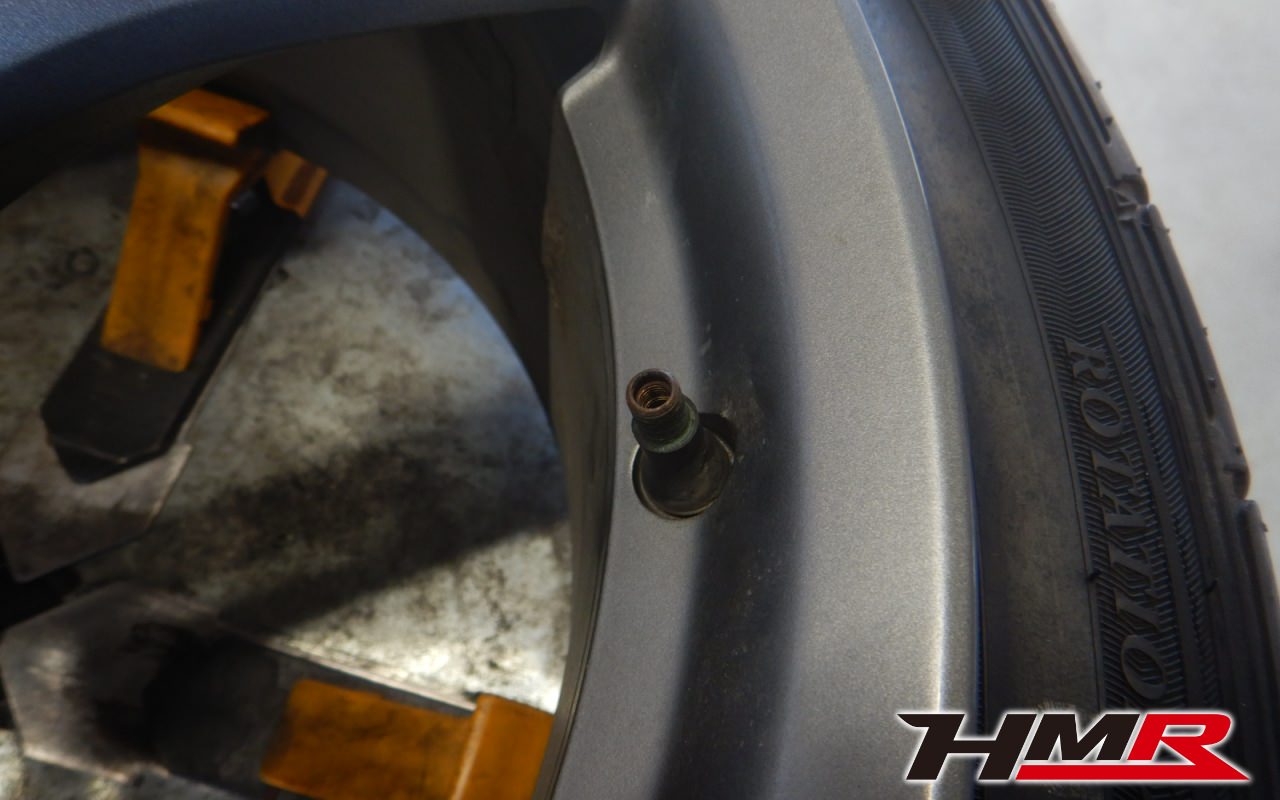 タイヤ溝の残量は、前後共に6.5mmでした。4輪全てに経年劣化による大きなヒビが見つかりましたのでお早めの交換をオススメさせていただきました。また右後ろのエアバルブからエア漏れが確認されましたのでこちらは後ほどエアバルブ交換させていただきました。