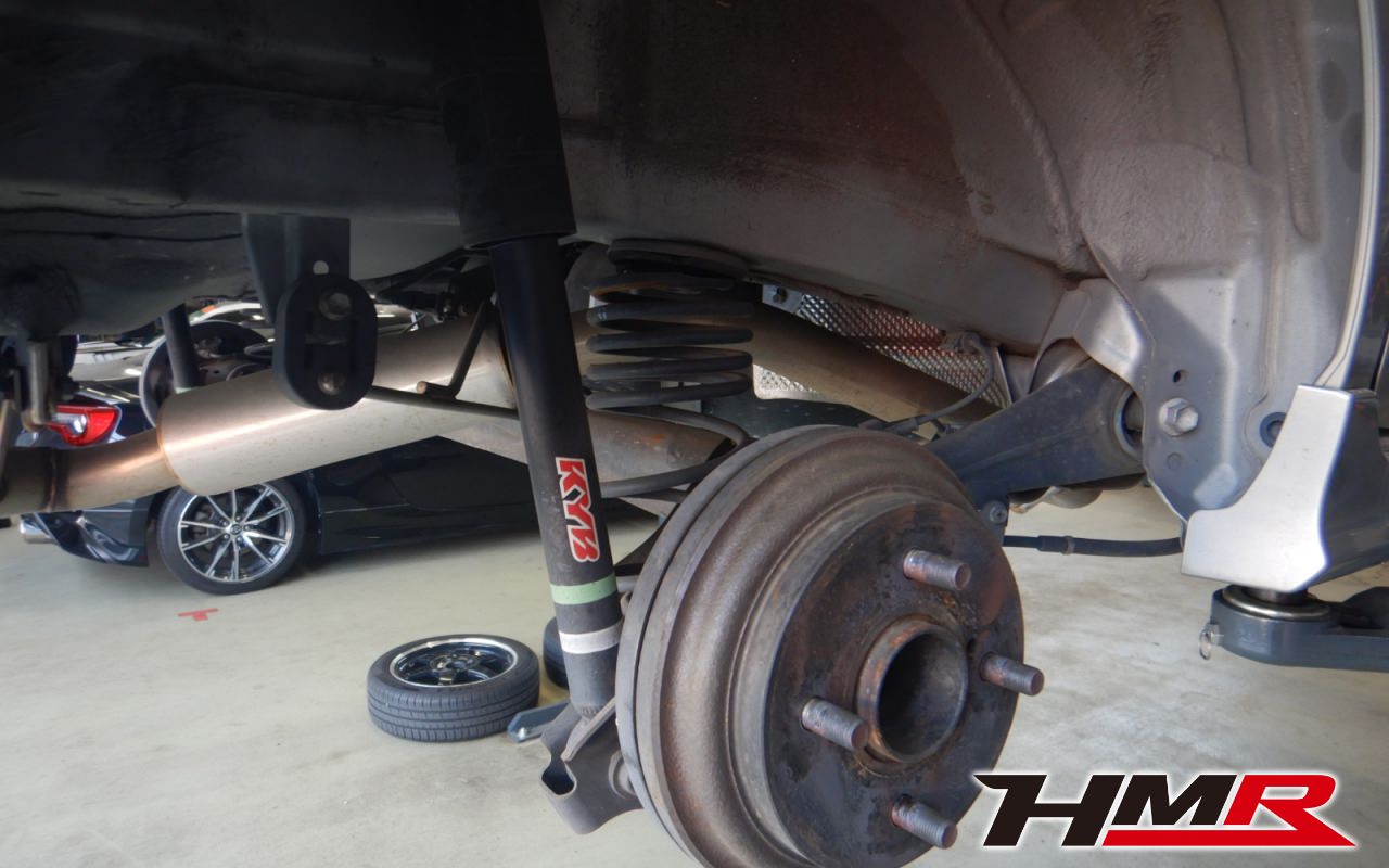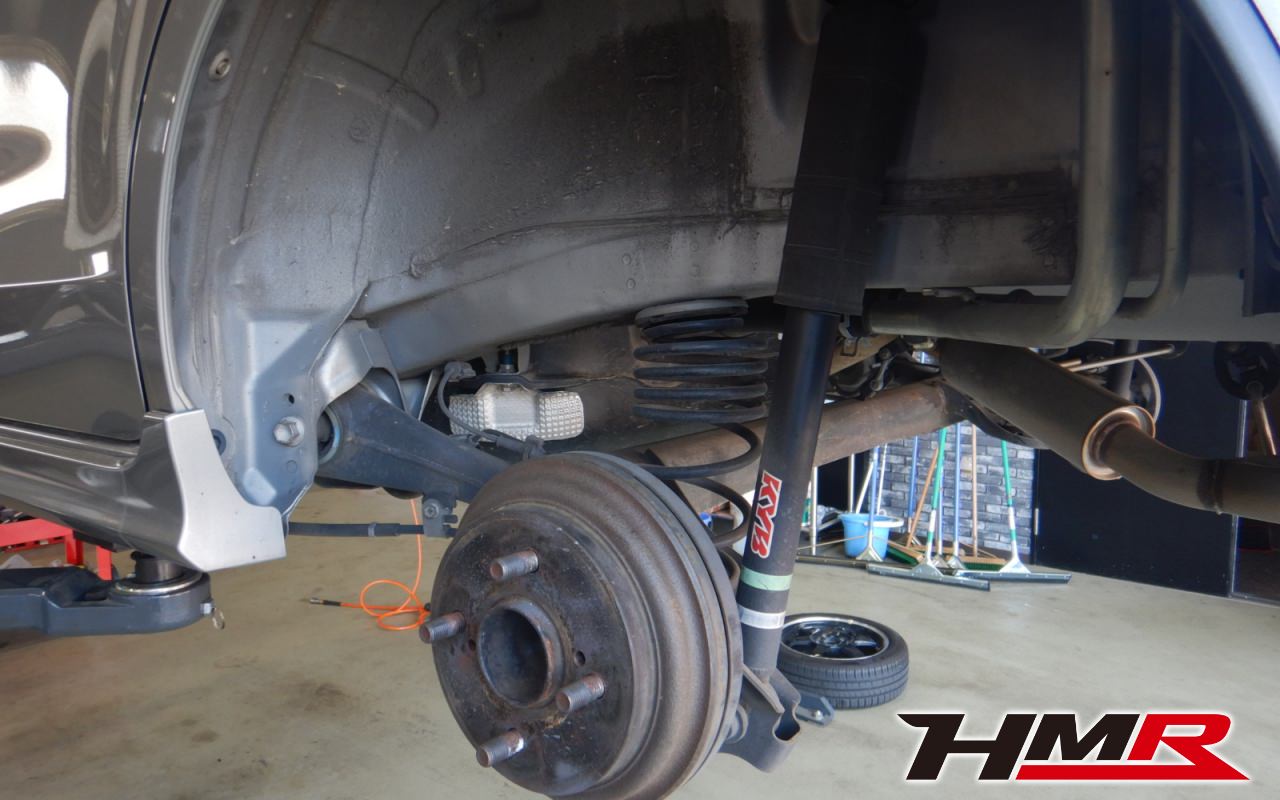 ハブベアリング・ボールジョイント、アーム・リンク類のガタ、ブッシュ・ブーツ類の劣化、エンジン・ミッション・デフからのオイル漏れと各マウント類、タイヤ溝の残量、空気圧の点検しました。
