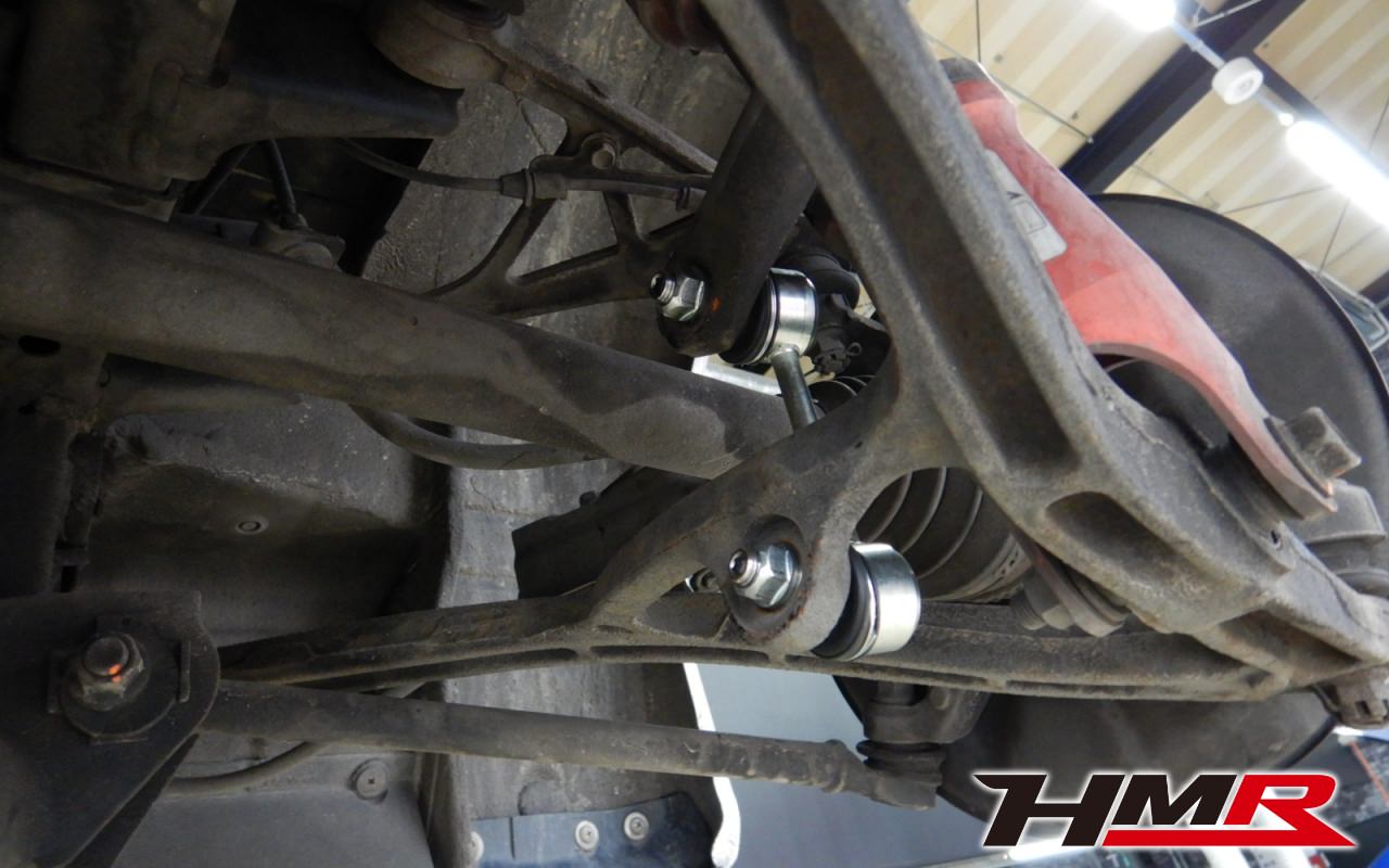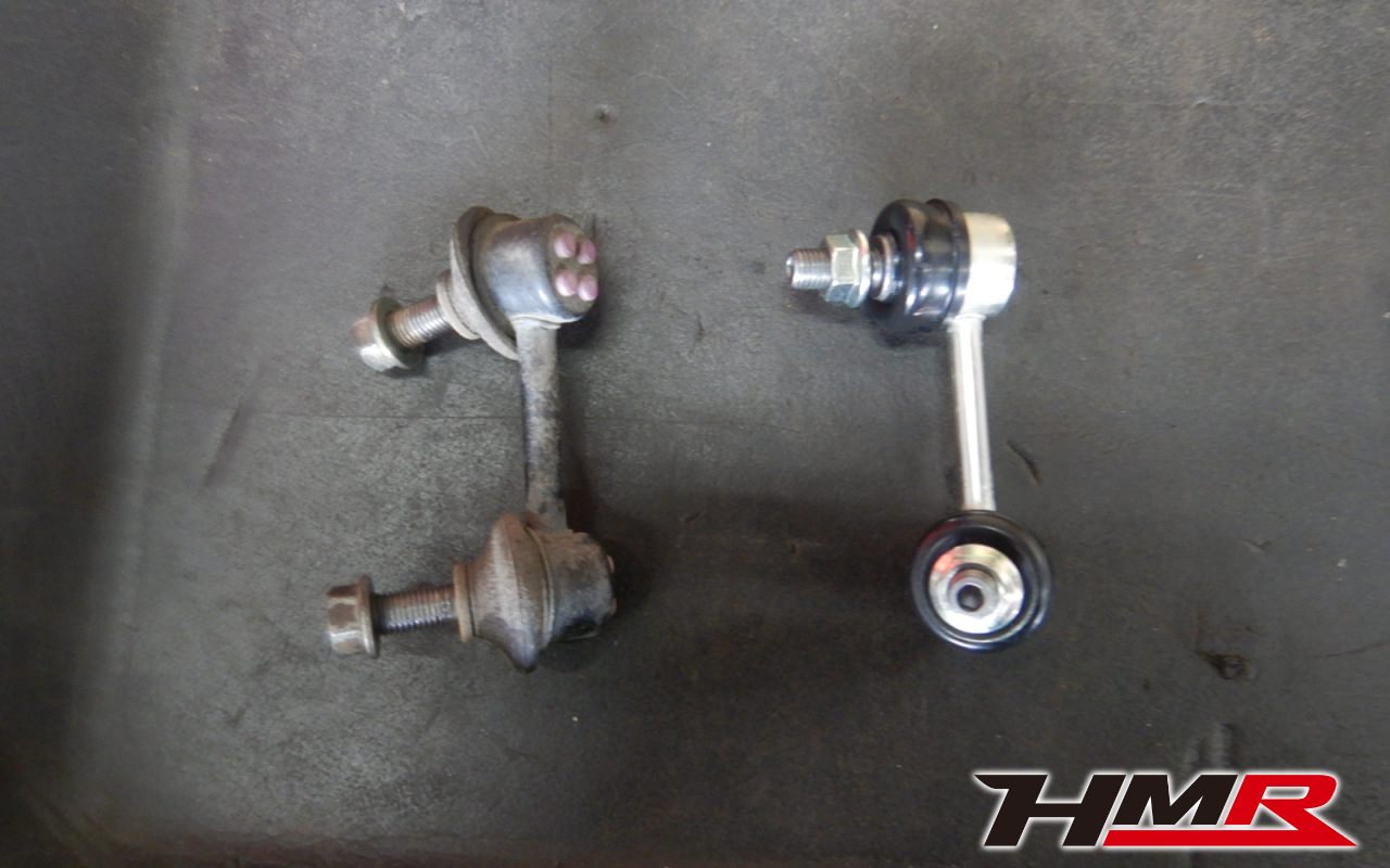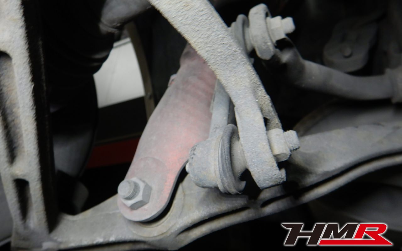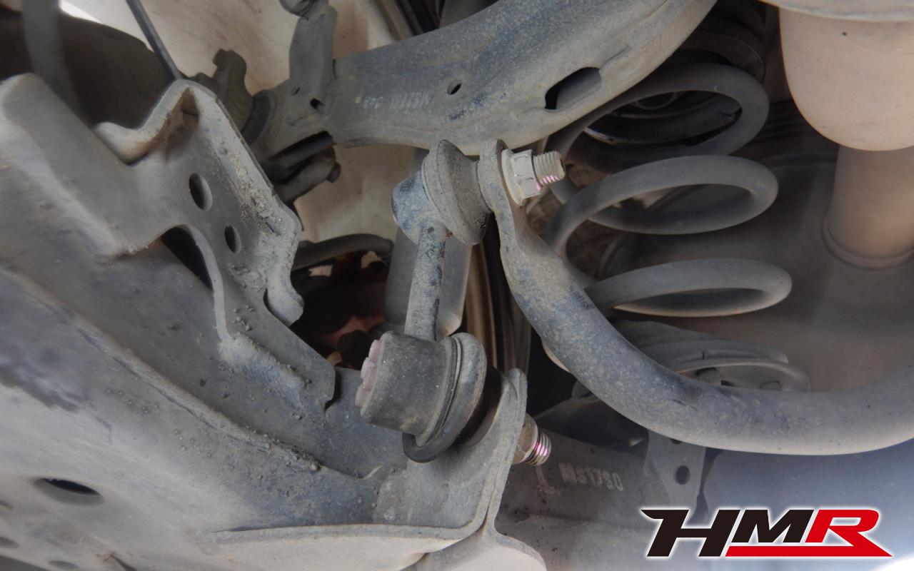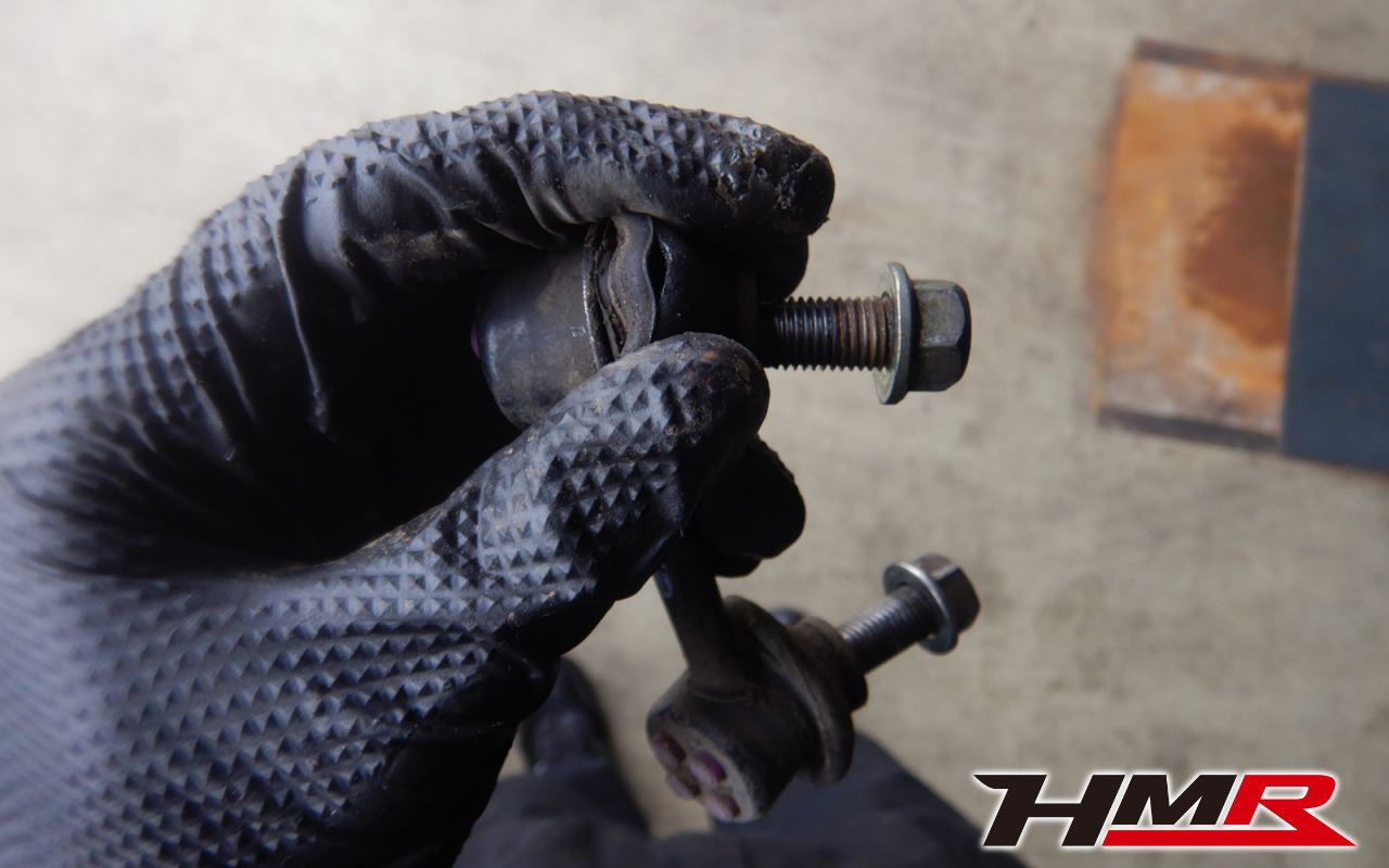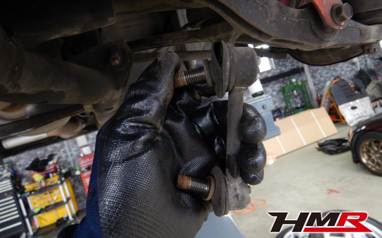 フロントロアアーム右ブーツ、右リアスタビリンクブーツ、リアアッパーアーム前側ブッシュ、リアロアアーム左ブーツ、リアショックロアアームブッシュにそれぞれにヒビまた切れが見つかりました。今回は右リアスタビリンクを交換しました。またサスペンションブッシュの交換をオススメさせていただきました。タイヤ残量はフロント6mm・リア5mmでした。