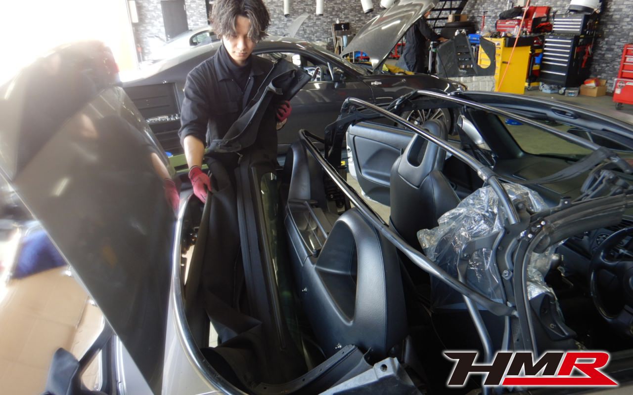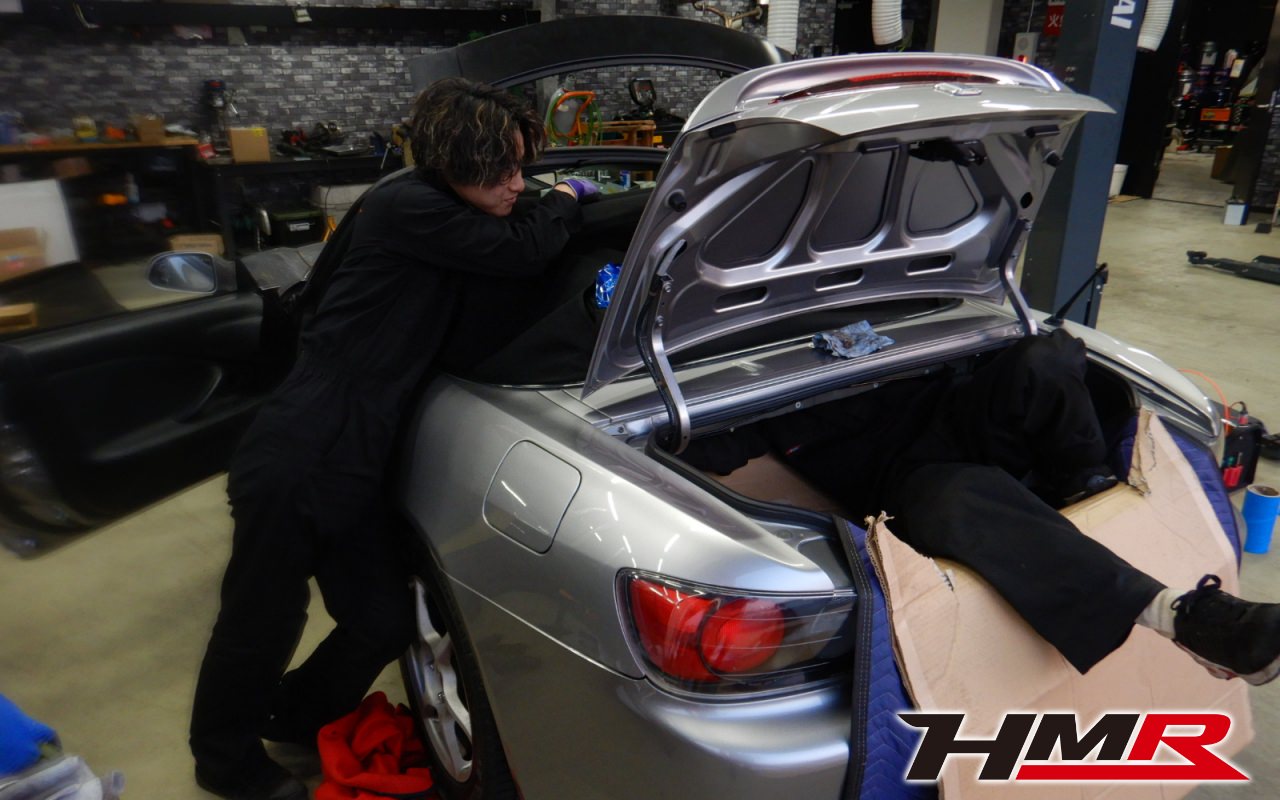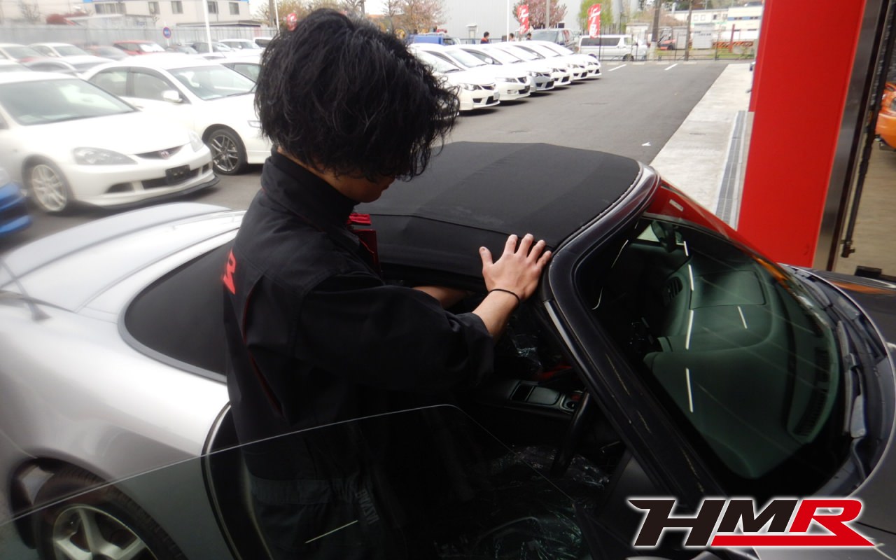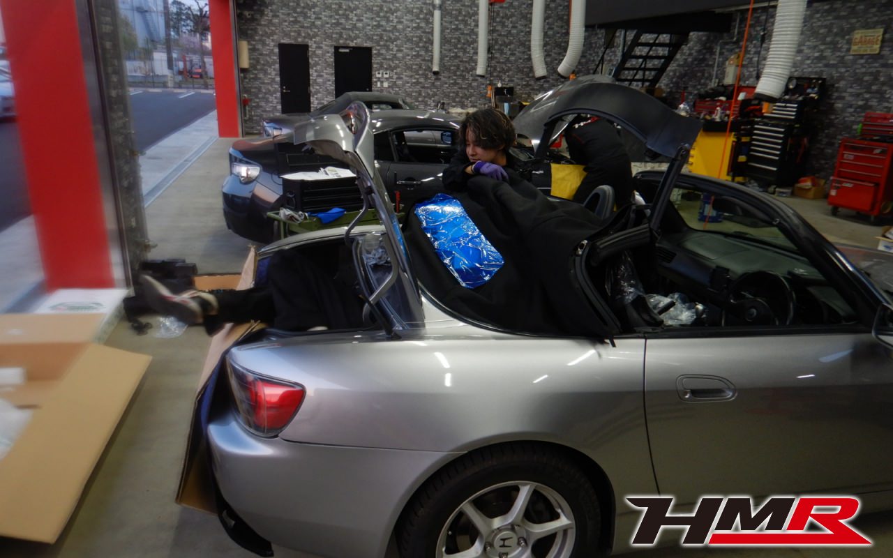 HMR(エイチエムアール)の栗原です。今回は新品ガラス幌 オプションBBS16インチ装備のS2000(AP1)の納車前点検整備を行いました。担当メカニックは手代木です。