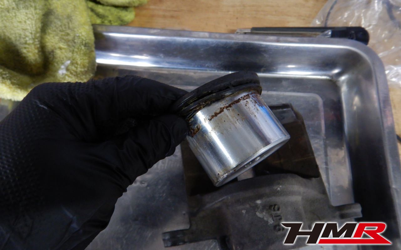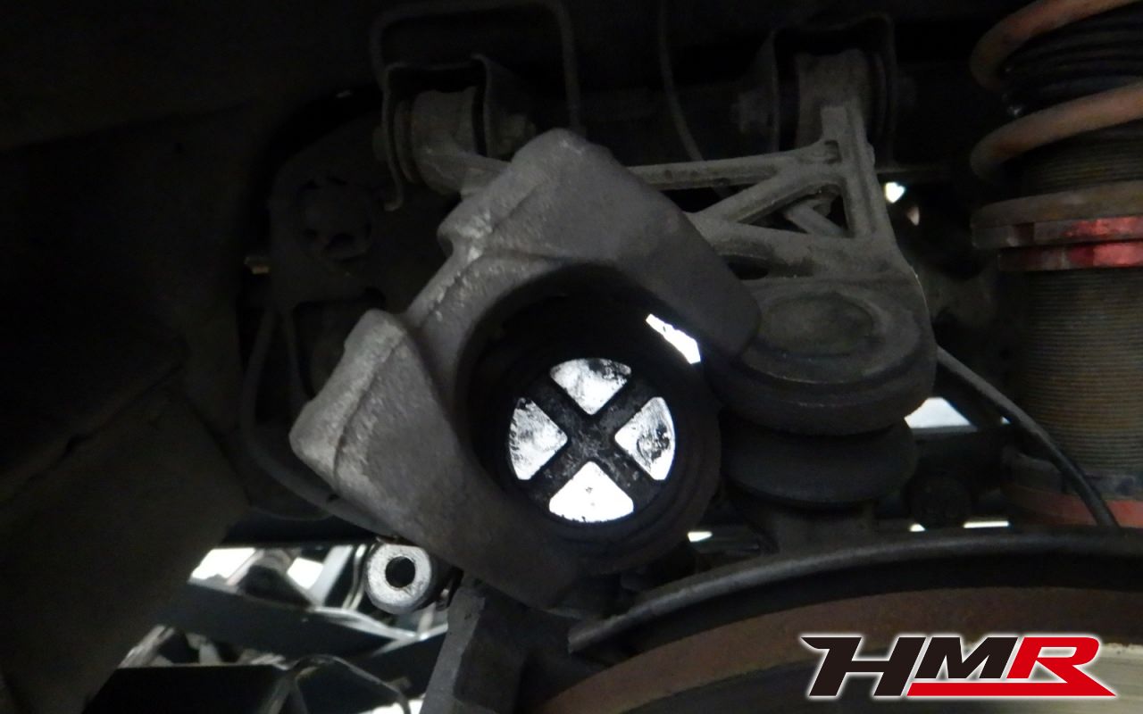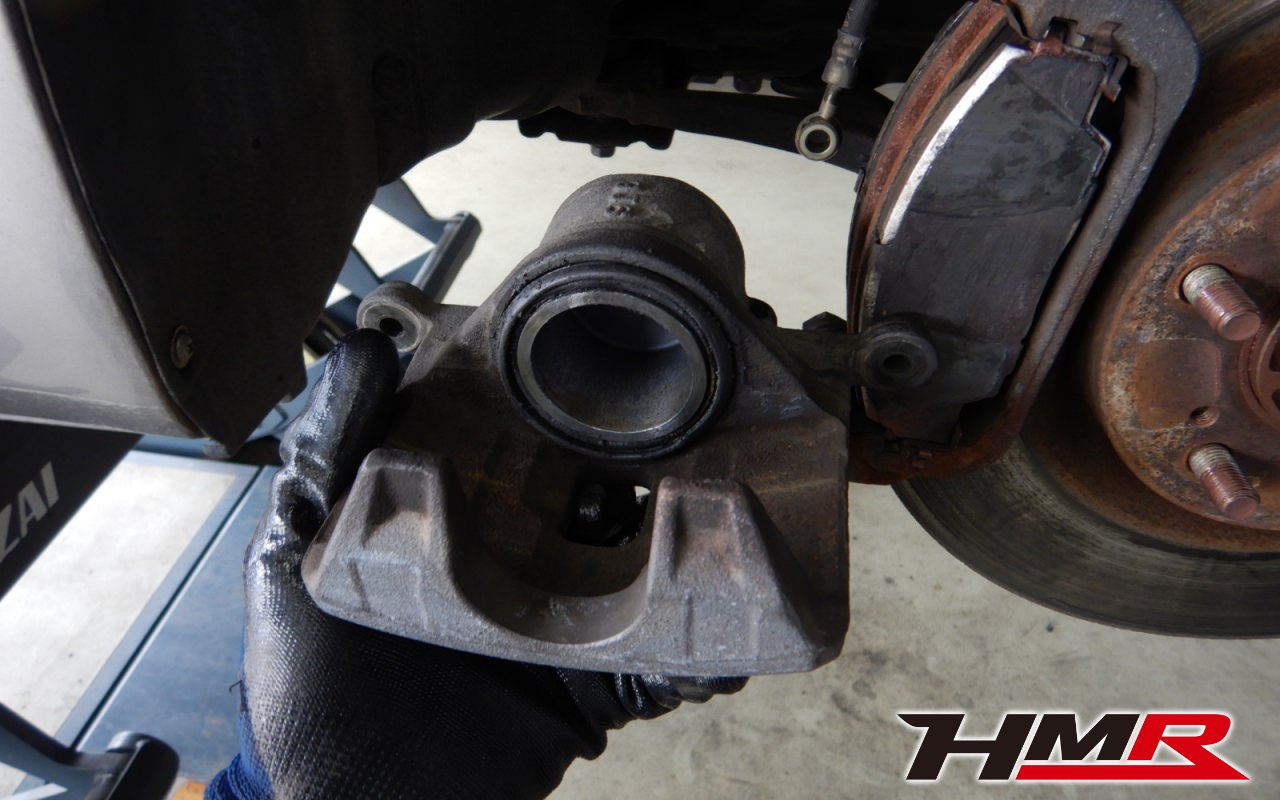 ブレーキキャリパーシール・キャリパーピストン、パッドの残量、ブレーキホースの劣化、ブレーキディスクローターの摩耗をチェックしました。フロントキャリパーのピストンシールが外れてしまったことによる錆が発生していましたので後ほど交換させていただきました。またブレーキローターの摩耗も進んでいましたが、すぐの交換は必要ないのでまたタイミングを見て交換をオススメいたします。ブレーキパッドの残量は、フロント9mm・リア5mmでした。