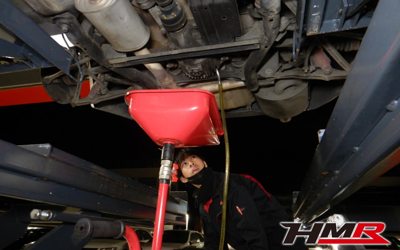 ハブベアリング・ボールジョイント、アーム・リンク類のガタ、ブッシュ・ブーツ類の劣化、エンジン・ミッション・デフからのオイル漏れと各マウント類、タイヤ溝の残量、空気圧の点検しました。
