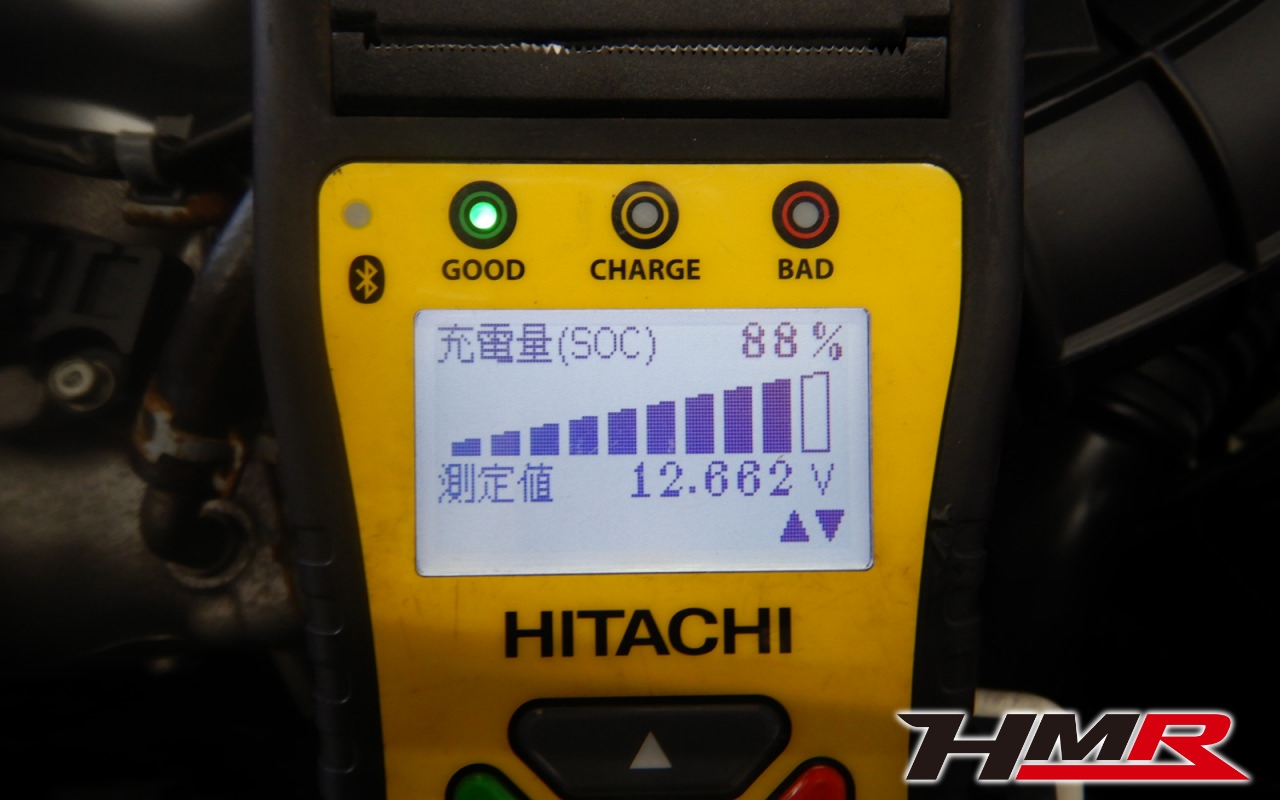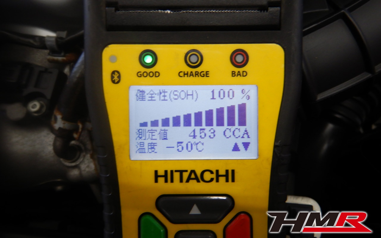 バッテリー、インテークホース、エアクリーナー、補機ベルト、プラグ、ブレーキ・クラッチマスターシリンダー、各部ゴム類の劣化、パッキン類・シール類からのオイル滲み・漏れ、ラジエターの劣化、冷却水漏れ、その他異音などをチェックしました。