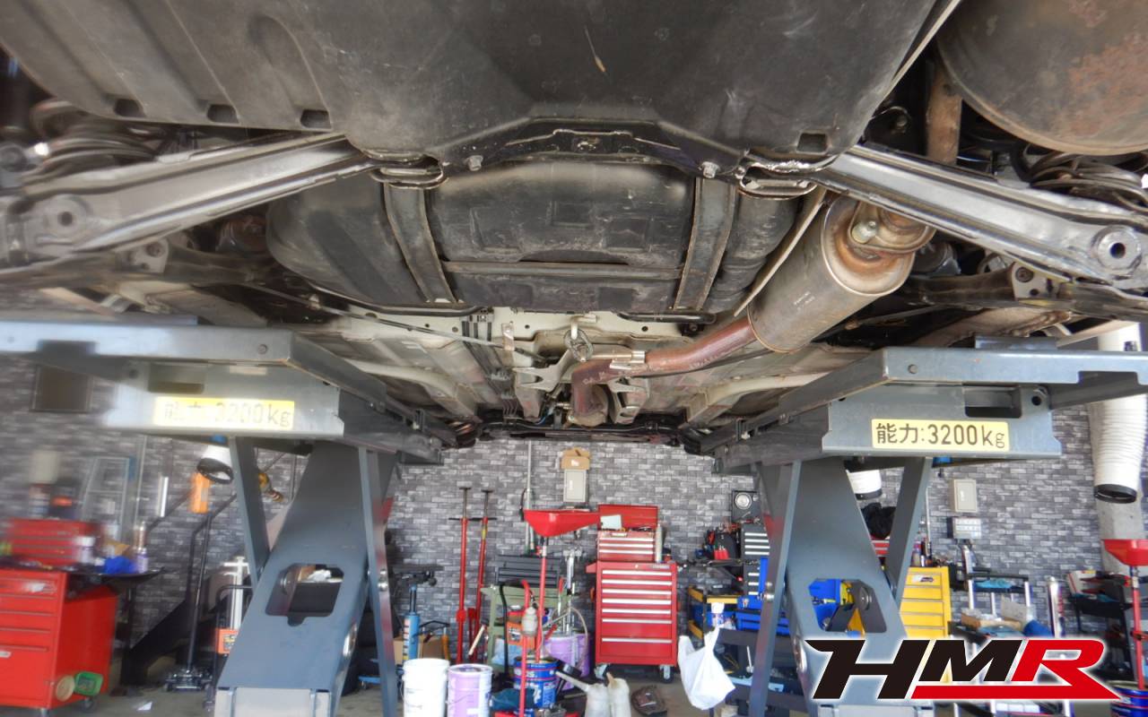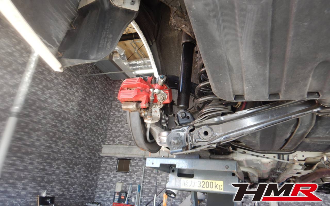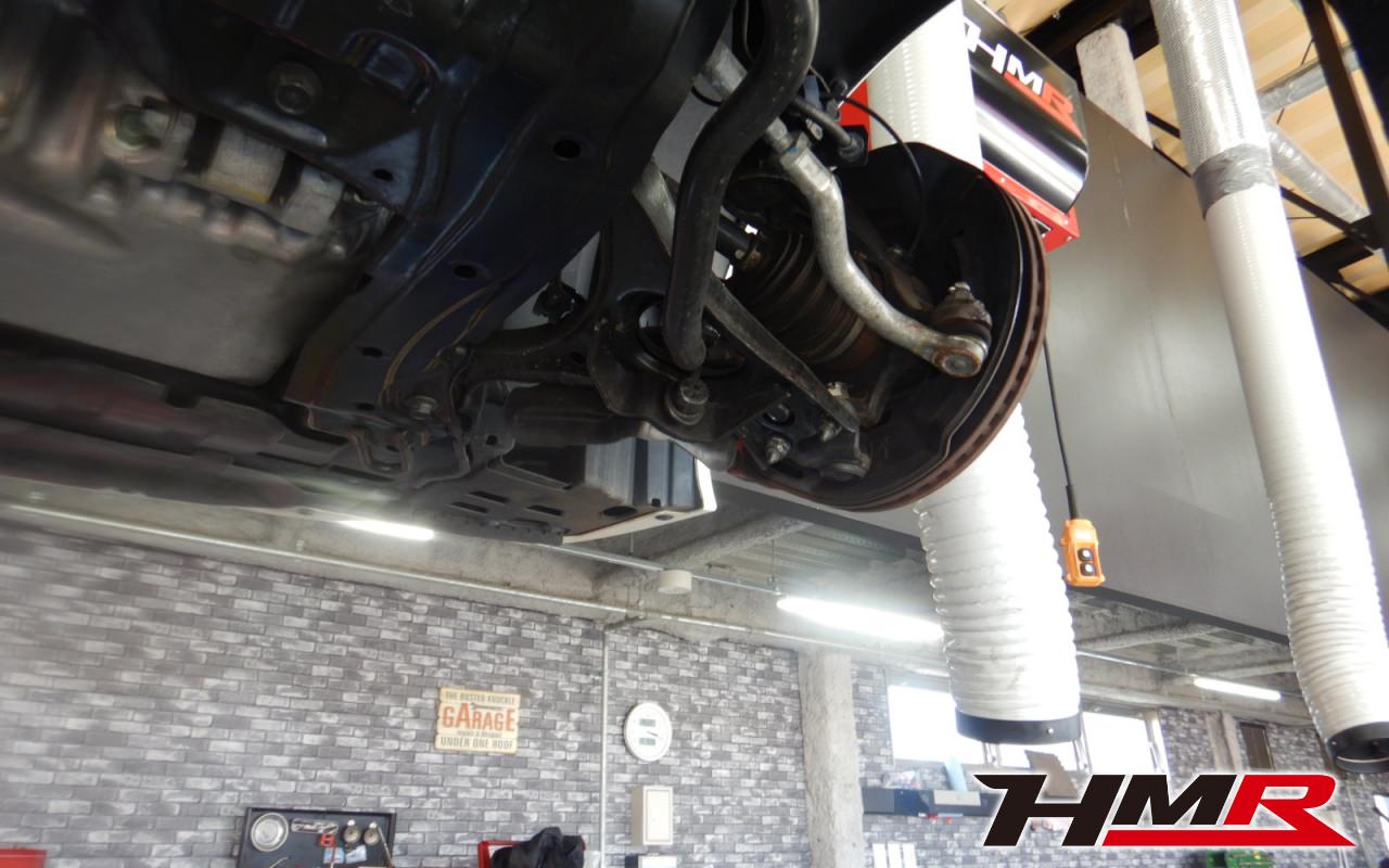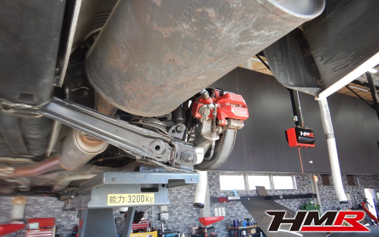 ハブベアリング・ボールジョイント、アーム・リンク類のガタ、ブッシュ・ブーツ類の劣化、エンジン・ミッション・デフからのオイル漏れと各マウント類、タイヤ溝の残量、空気圧の点検しました。