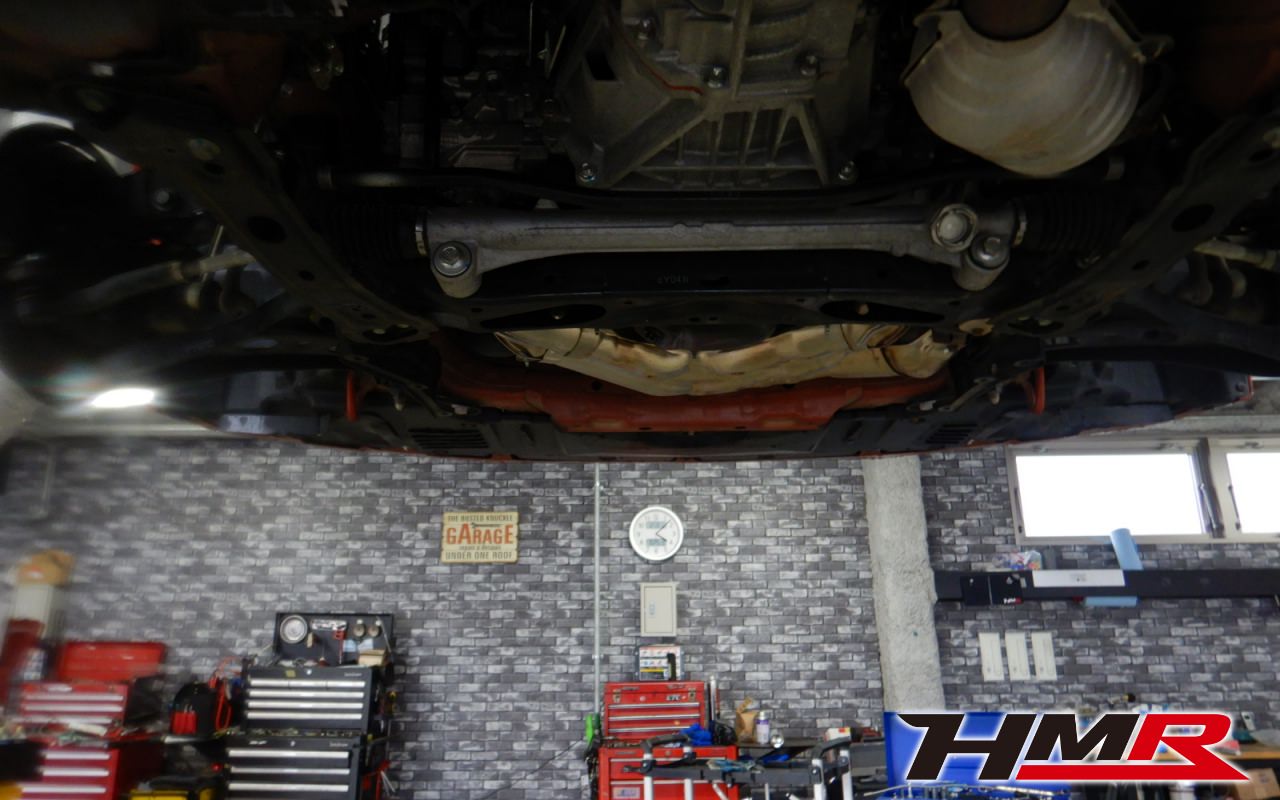 ハブベアリング・ボールジョイント、アーム・リンク類のガタ、ブッシュ・ブーツ類の劣化、エンジン・ミッション・デフからのオイル漏れと各マウント類、タイヤ溝の残量、空気圧の点検しました。特に問題ありませんでした。タイヤ残量はフロント3mm・リア4mmでした。