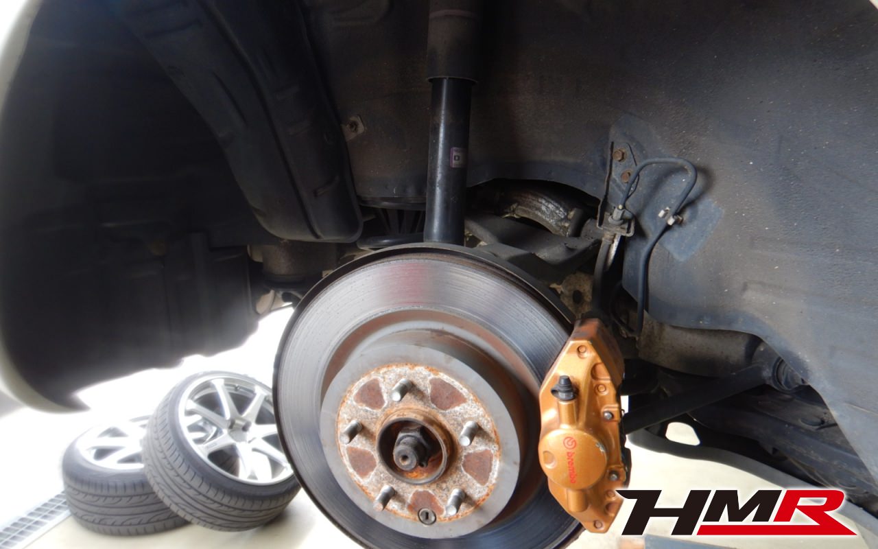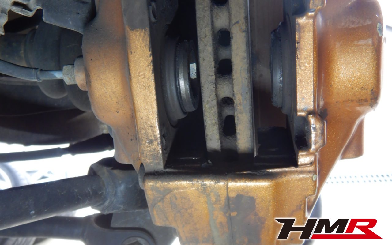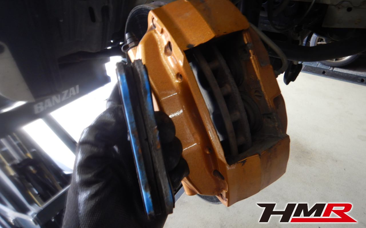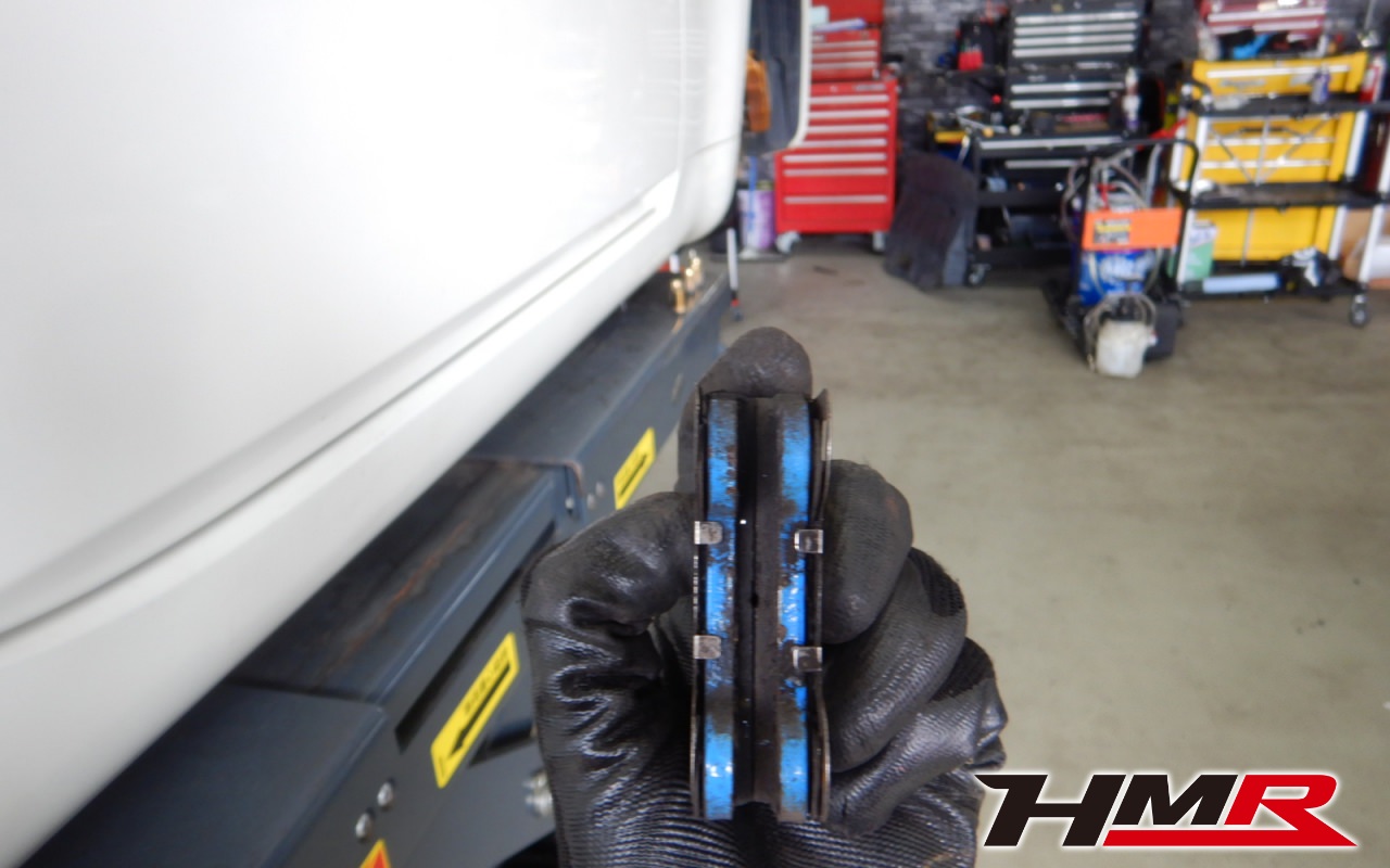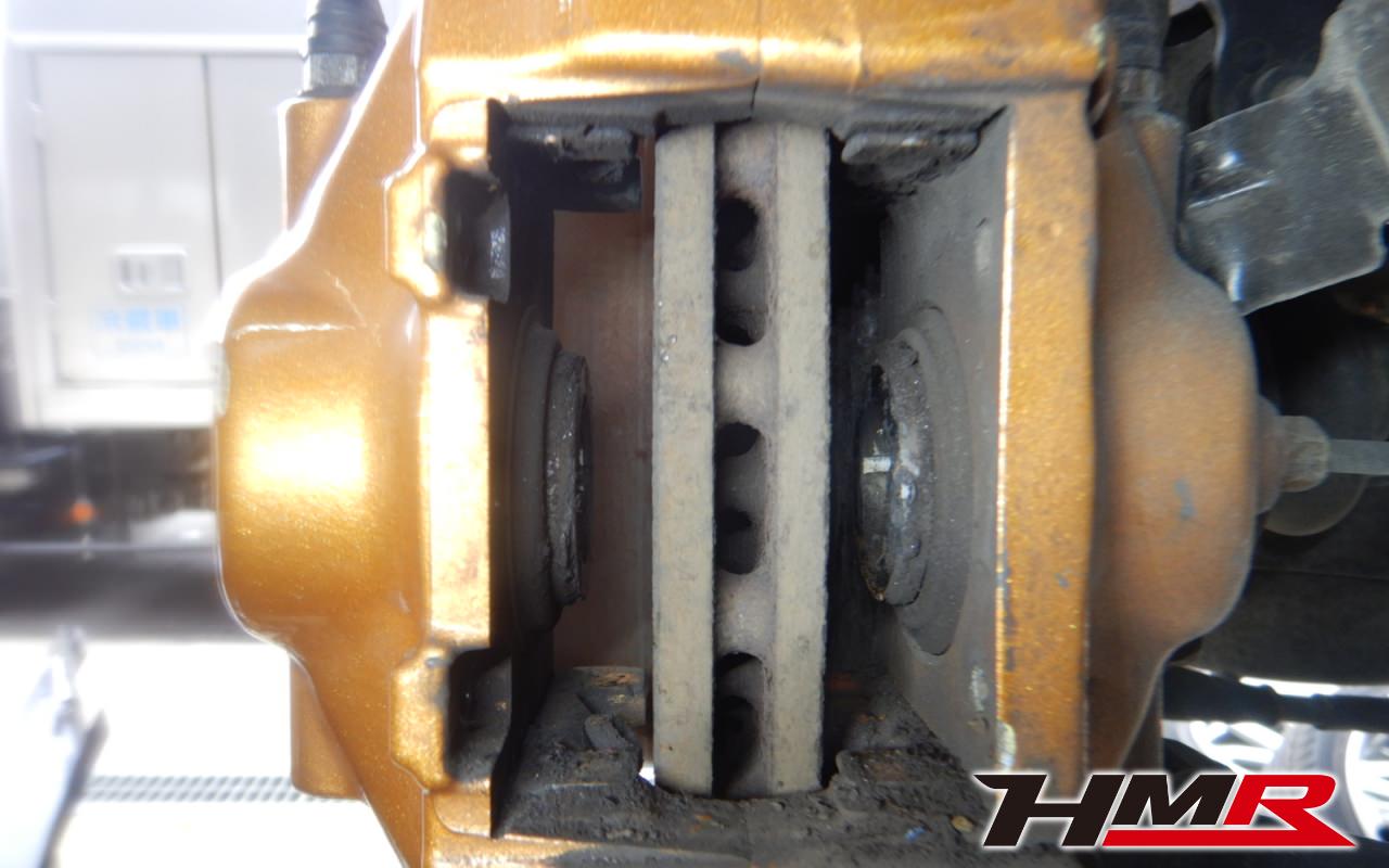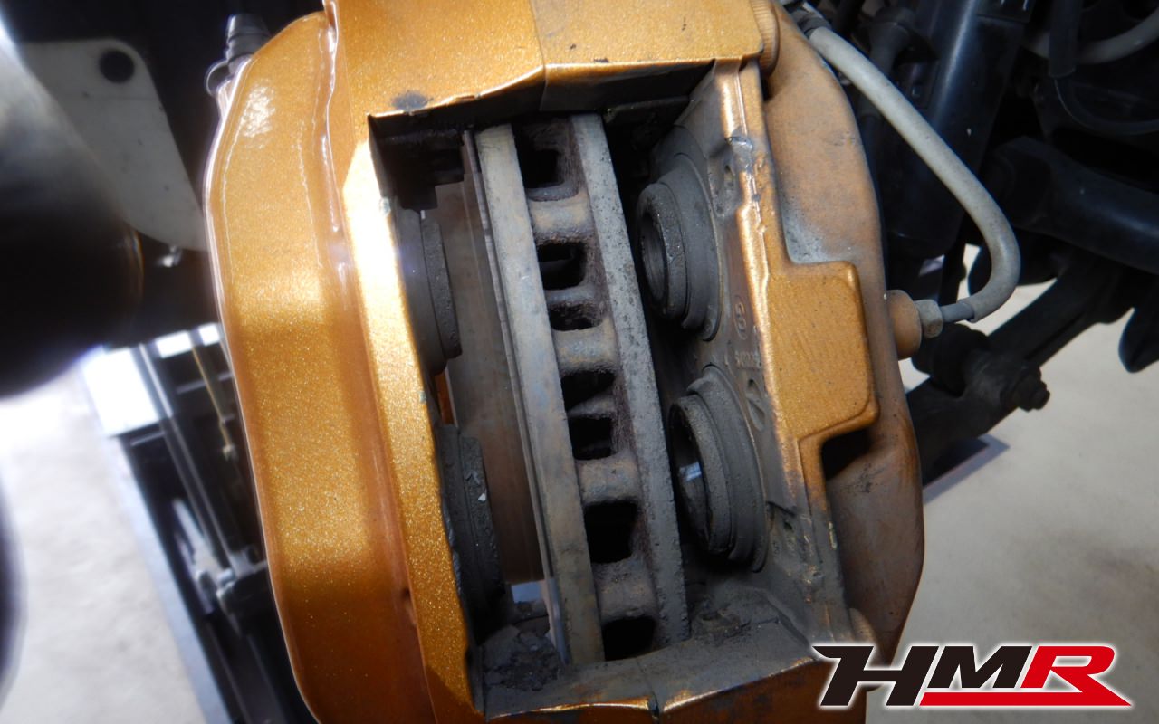 ブレーキキャリパーシール・キャリパーピストン、パッドの残量、ブレーキホースの劣化、ブレーキディスクローターの摩耗をチェックしました。ブレーキパッド前後とも残量が著しく少なかったので後ほど交換させていただきました。