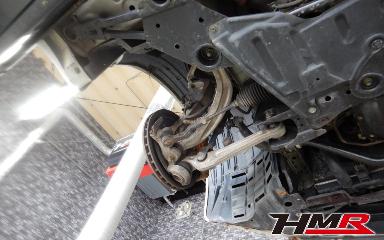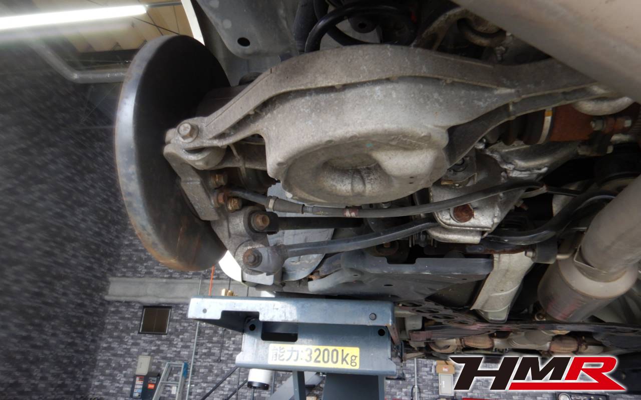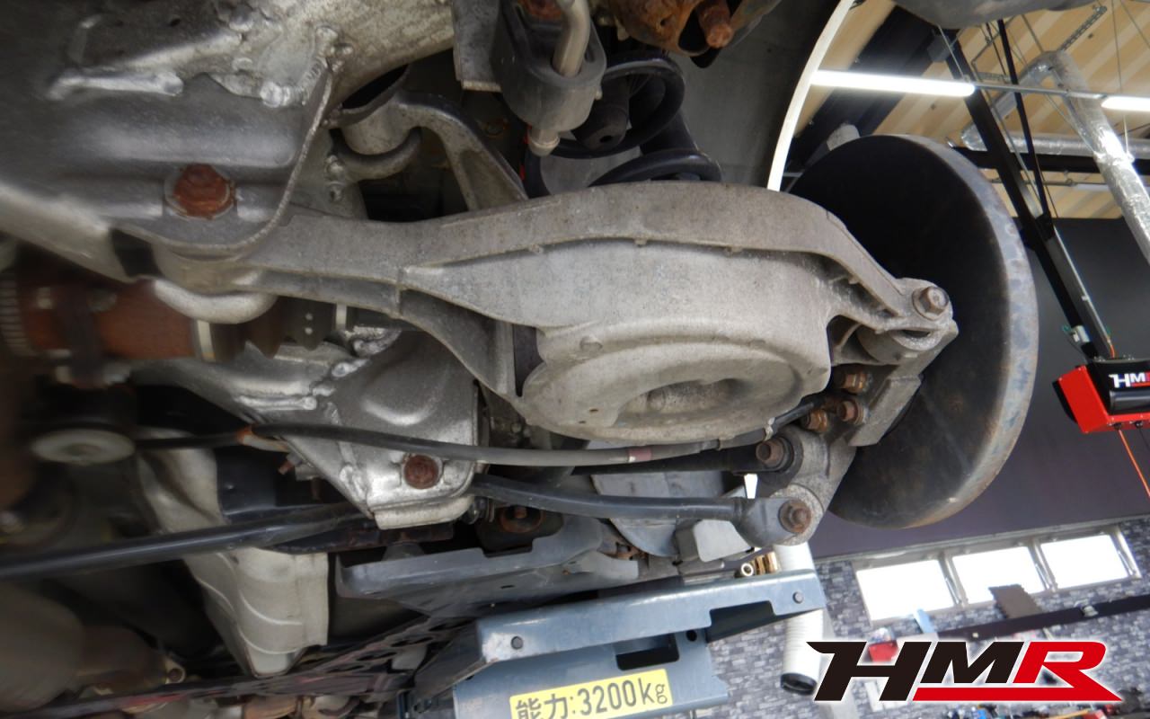 ハブベアリング・ボールジョイント、アーム・リンク類のガタ、ブッシュ・ブーツ類の劣化、エンジン・ミッション・デフからのオイル漏れと各マウント類、タイヤ溝の残量、空気圧の点検しました。
