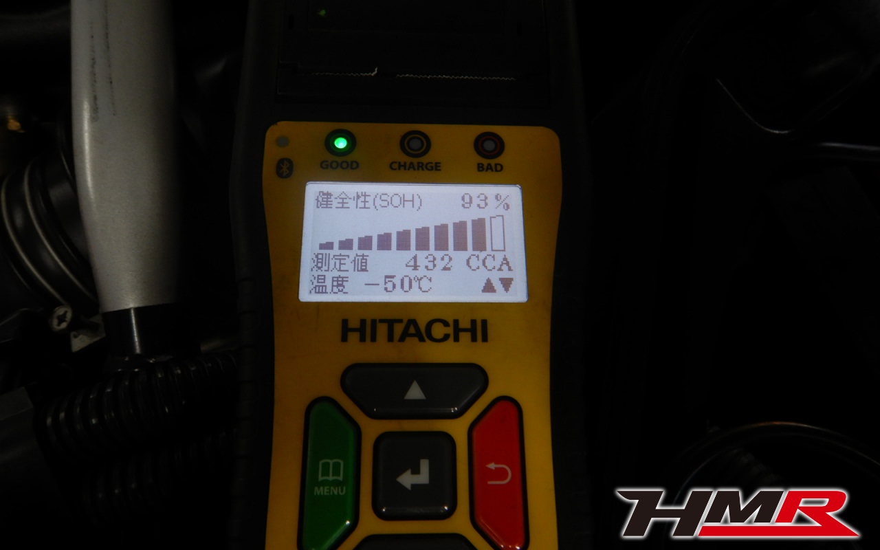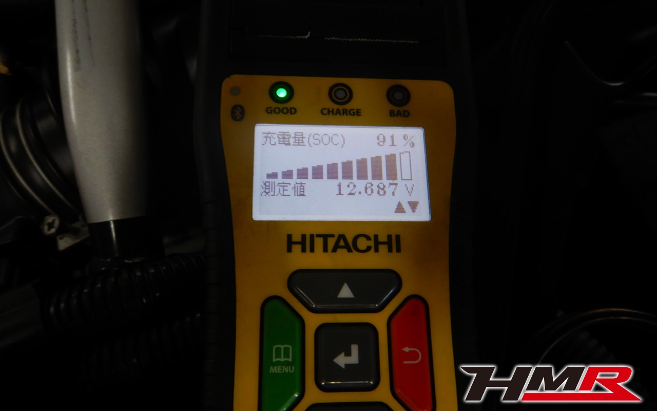 バッテリー、インテークホース、エアクリーナー、補機ベルト、プラグ、ブレーキ・クラッチマスターシリンダー、各部ゴム類の劣化、パッキン類・シール類からのオイル滲み・漏れ、ラジエターの劣化、冷却水漏れ、その他異音などをチェックしました。