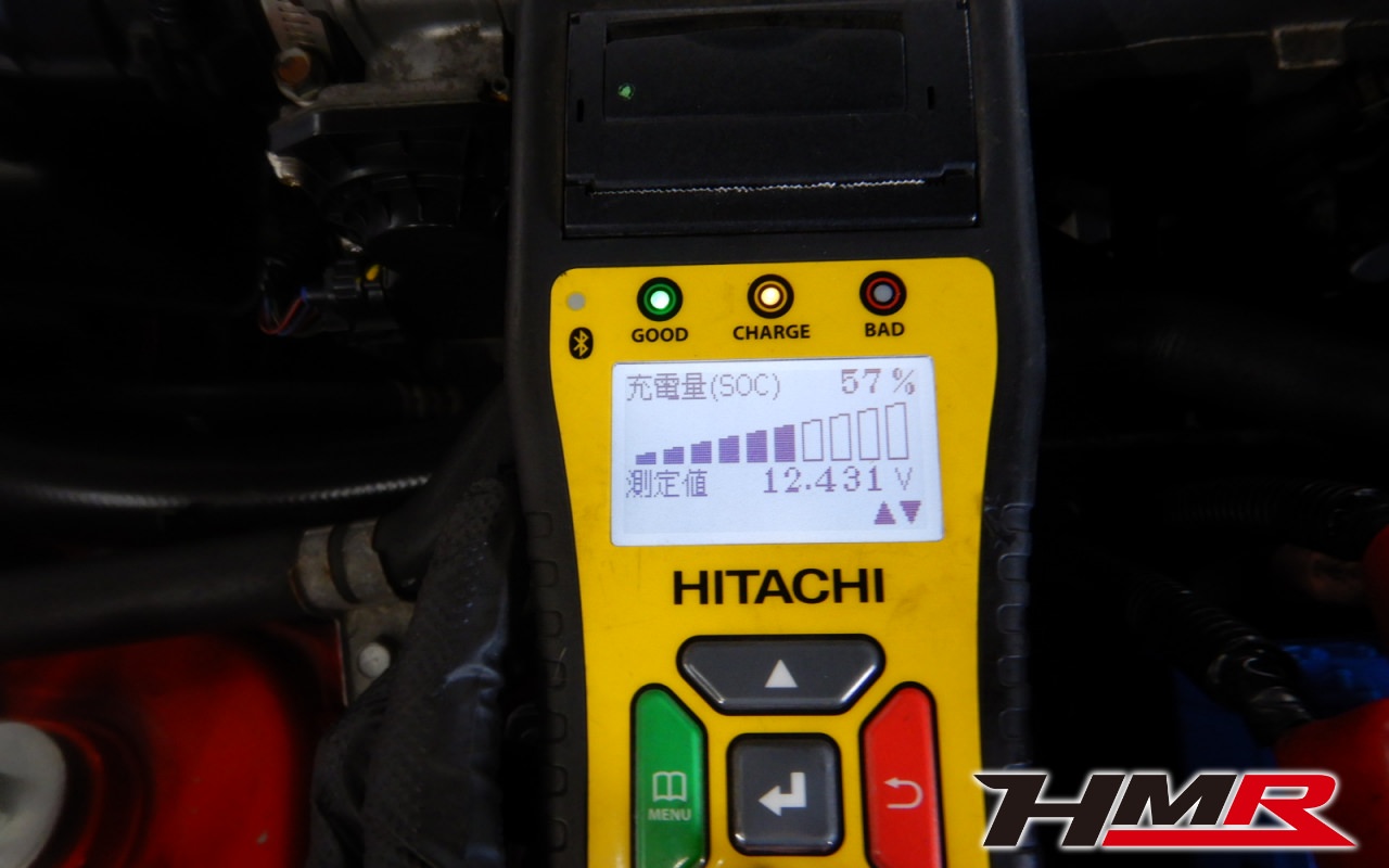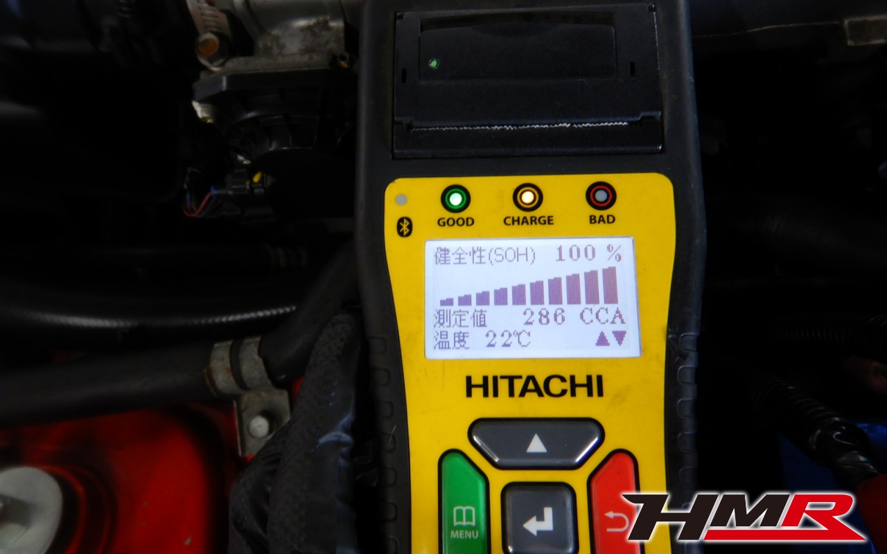 バッテリー、インテークホース、エアクリーナー、補機ベルト、プラグ、ブレーキ・クラッチマスターシリンダー、各部ゴム類の劣化、パッキン類・シール類からのオイル滲み・漏れ、ラジエターの劣化、冷却水漏れ、その他異音などをチェックしました。