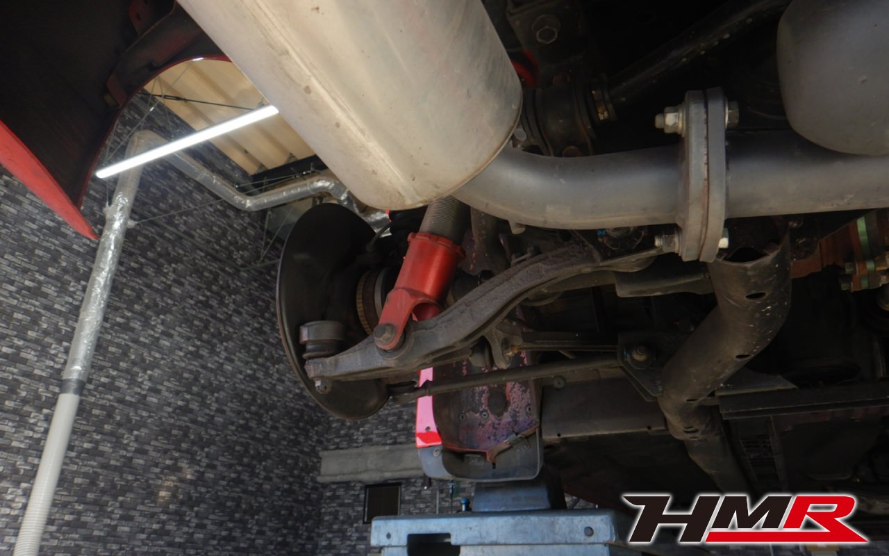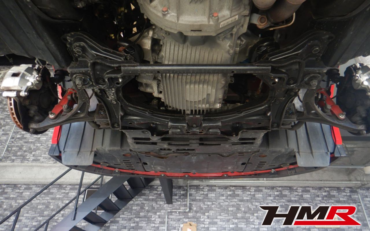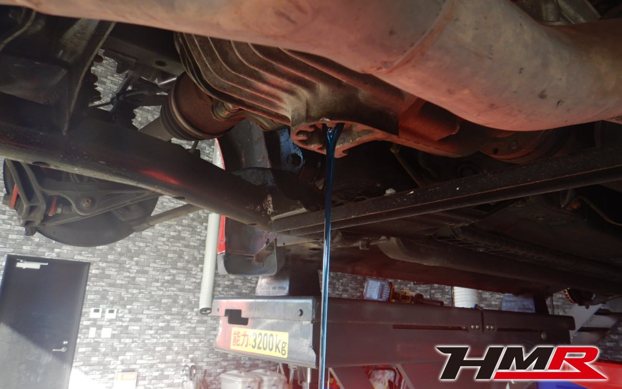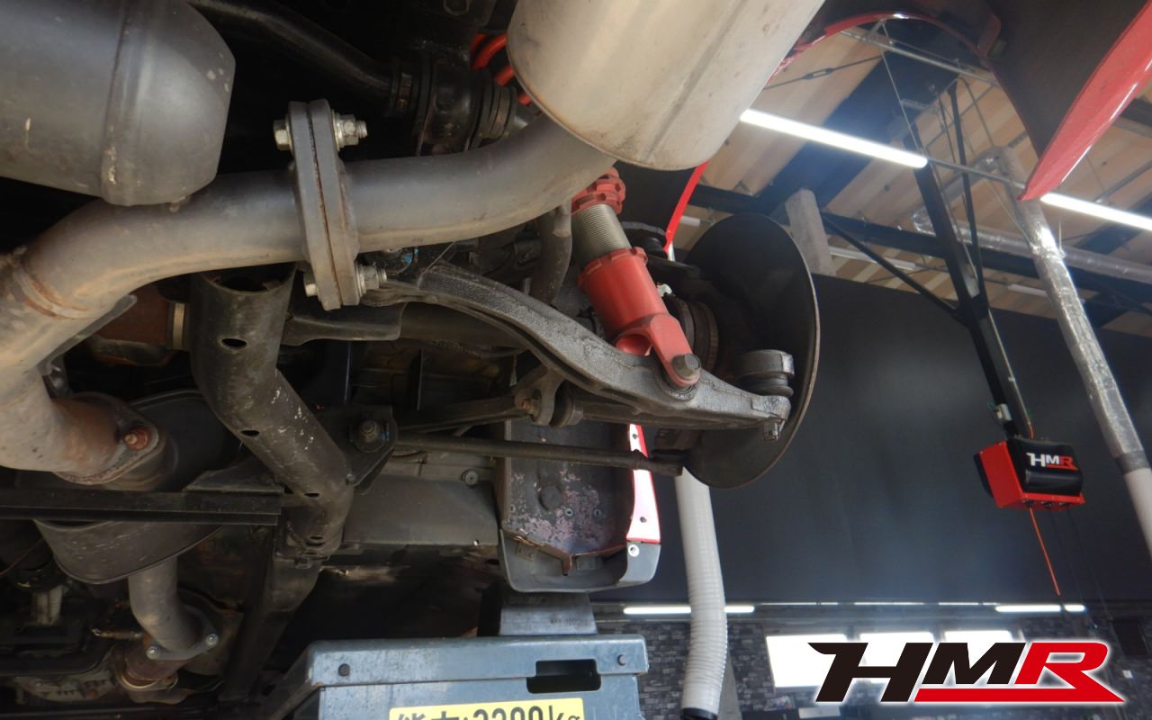 ハブベアリング・ボールジョイント、アーム・リンク類のガタ、ブッシュ・ブーツ類の劣化、エンジン・ミッション・デフからのオイル漏れと各マウント類、タイヤ溝の残量、空気圧の点検しました。