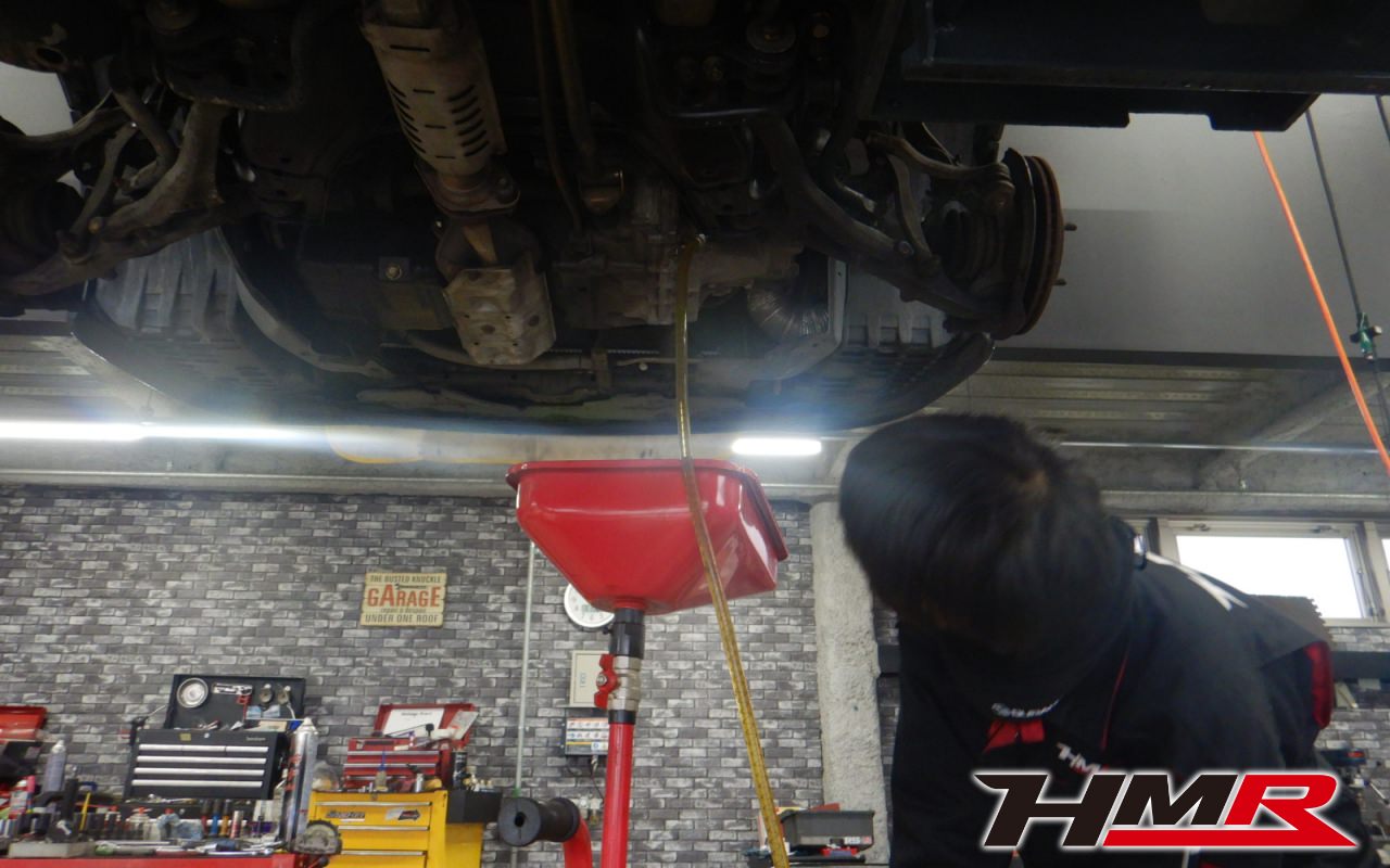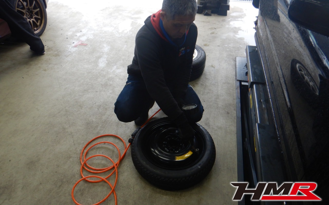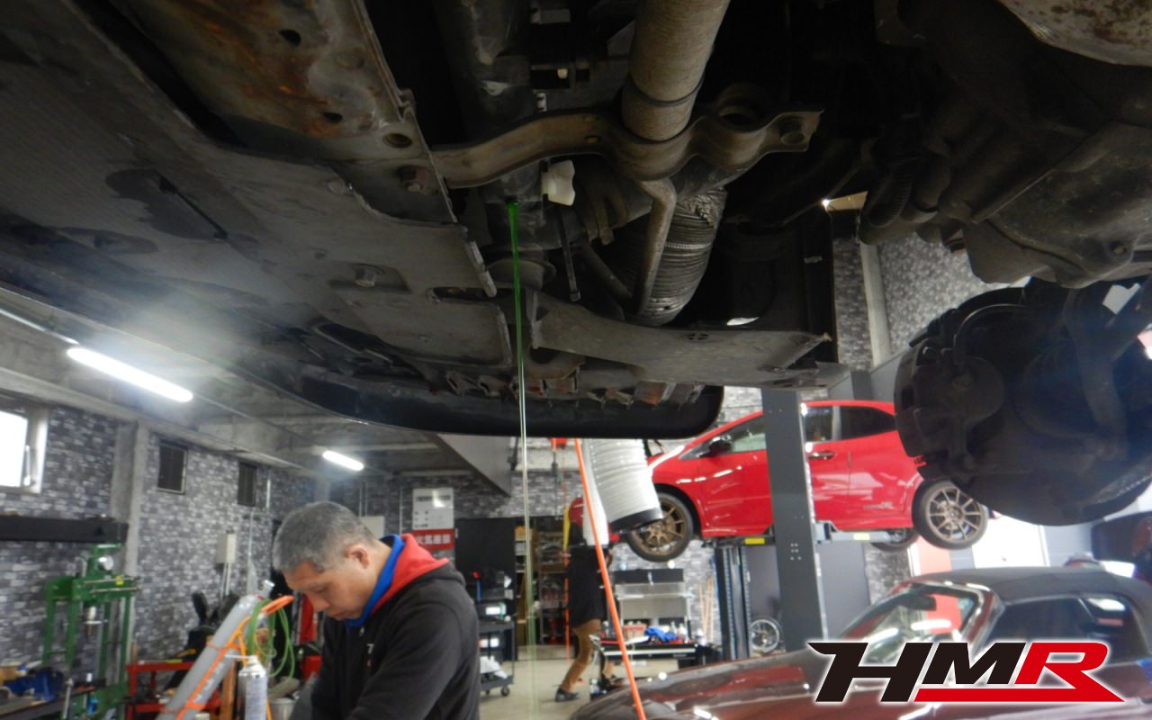 ハブベアリング・ボールジョイント、アーム・リンク類のガタ、ブッシュ・ブーツ類の劣化、エンジン・ミッション・デフからのオイル漏れと各マウント類、タイヤ溝の残量、空気圧の点検しました。